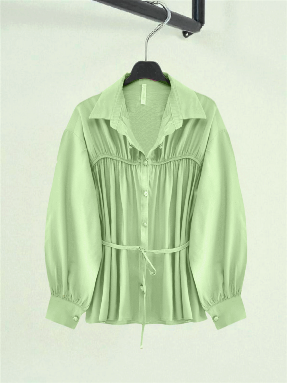 Robadan Büzgülü Beli Bağcıklı Gömlek -Çağla Y. (398-1044-R70)