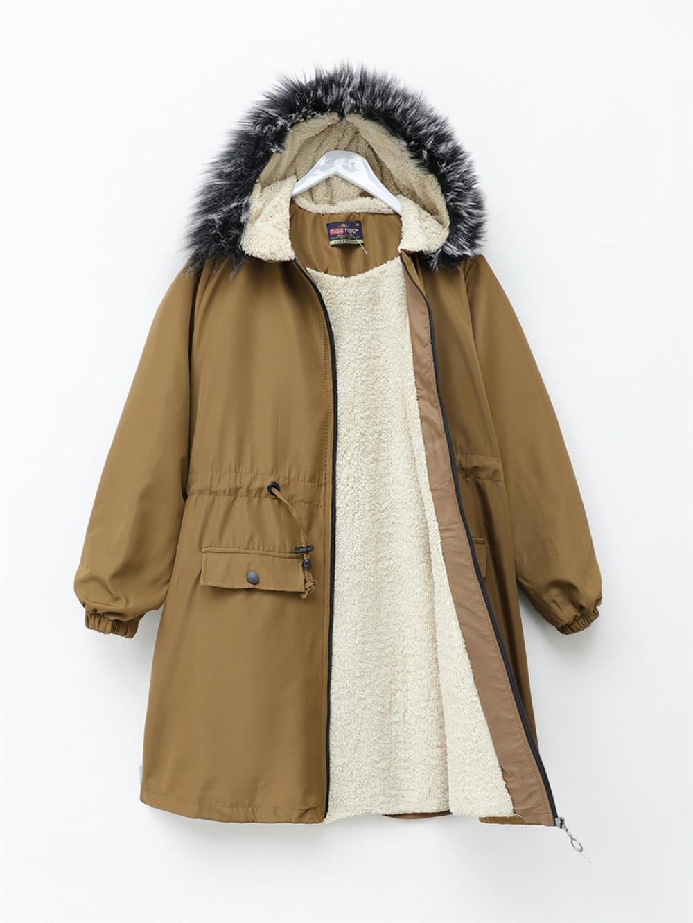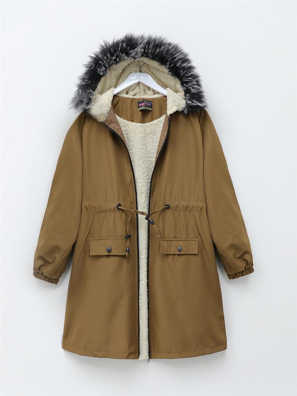 معطف بونديت مبطن بالفرو بغطاء للرأس - أسمر ضارب للصفرة (192-08042-R12)