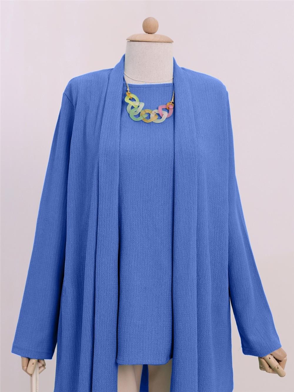 سترة مجعدة بياقة شال غير متماثلة - أزرق داكن (186-631-R26)