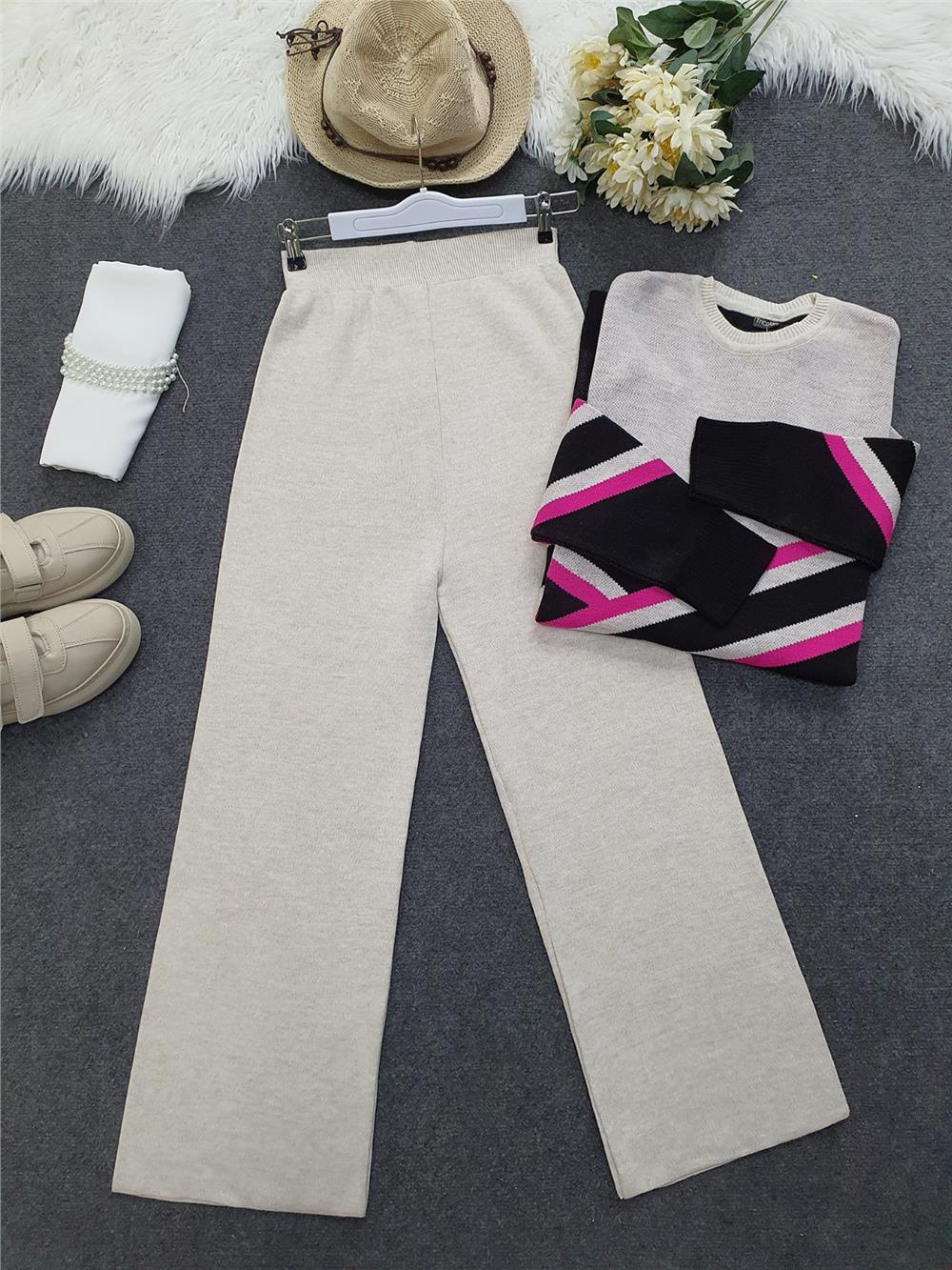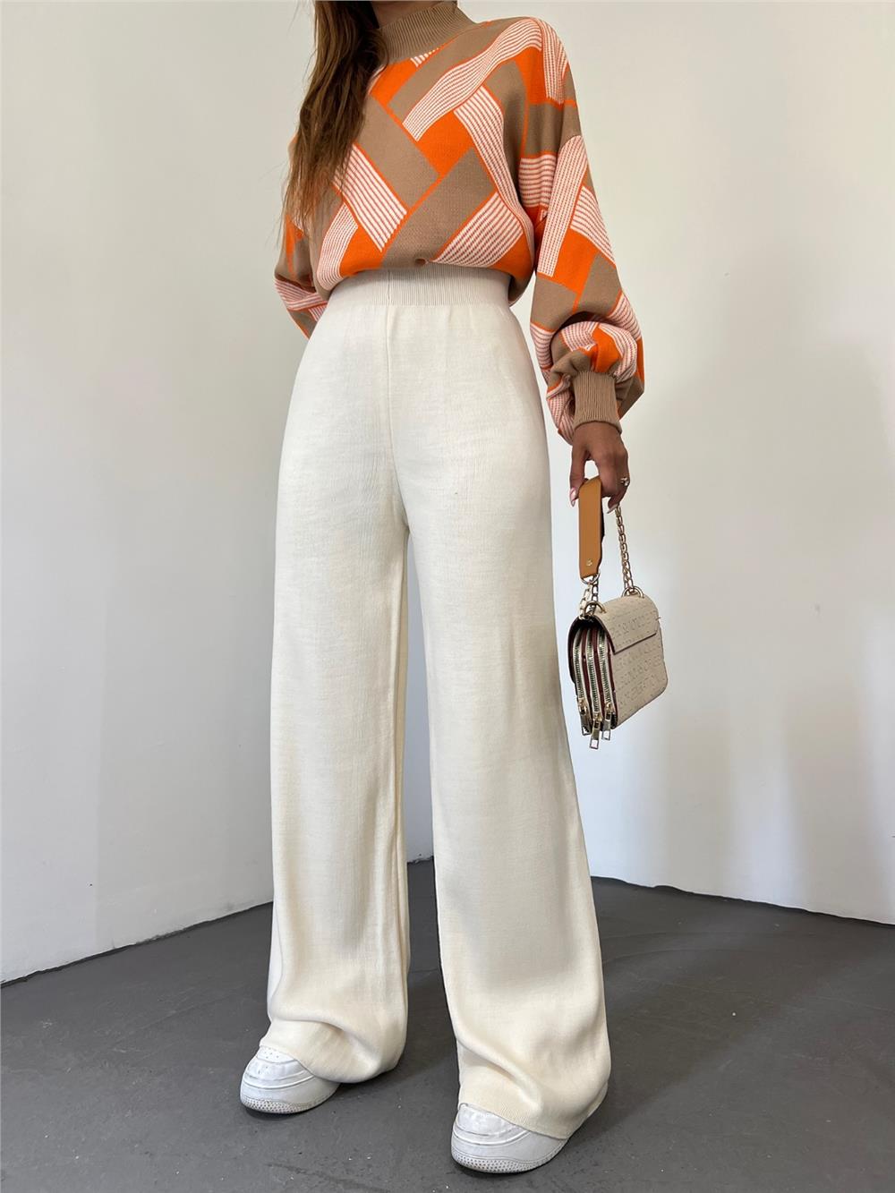 Our elasticated, wide-leg and very comfortable knitwear trouser model is one of the best-selling models in this cool weather.