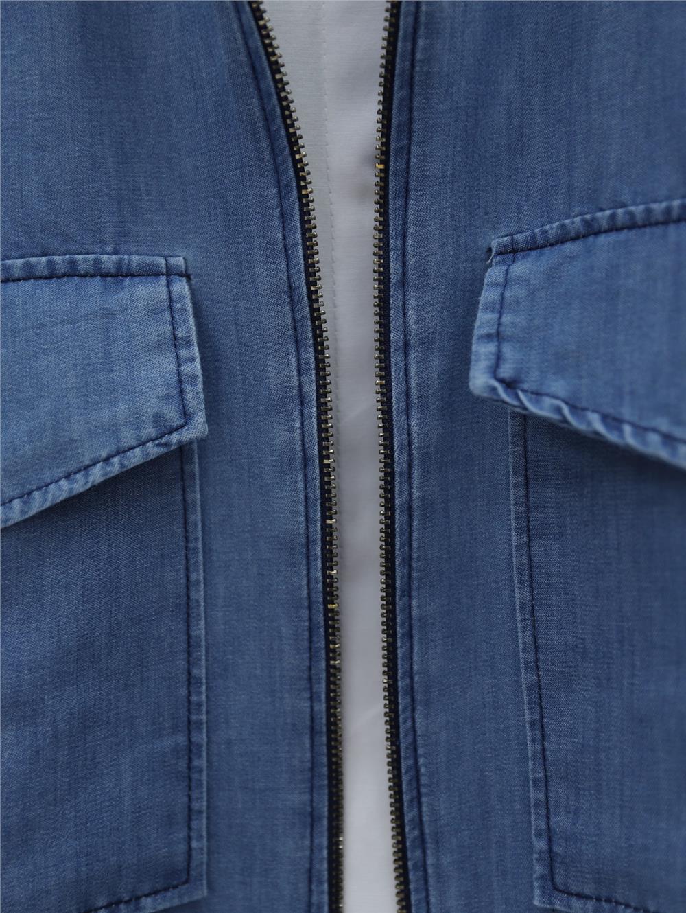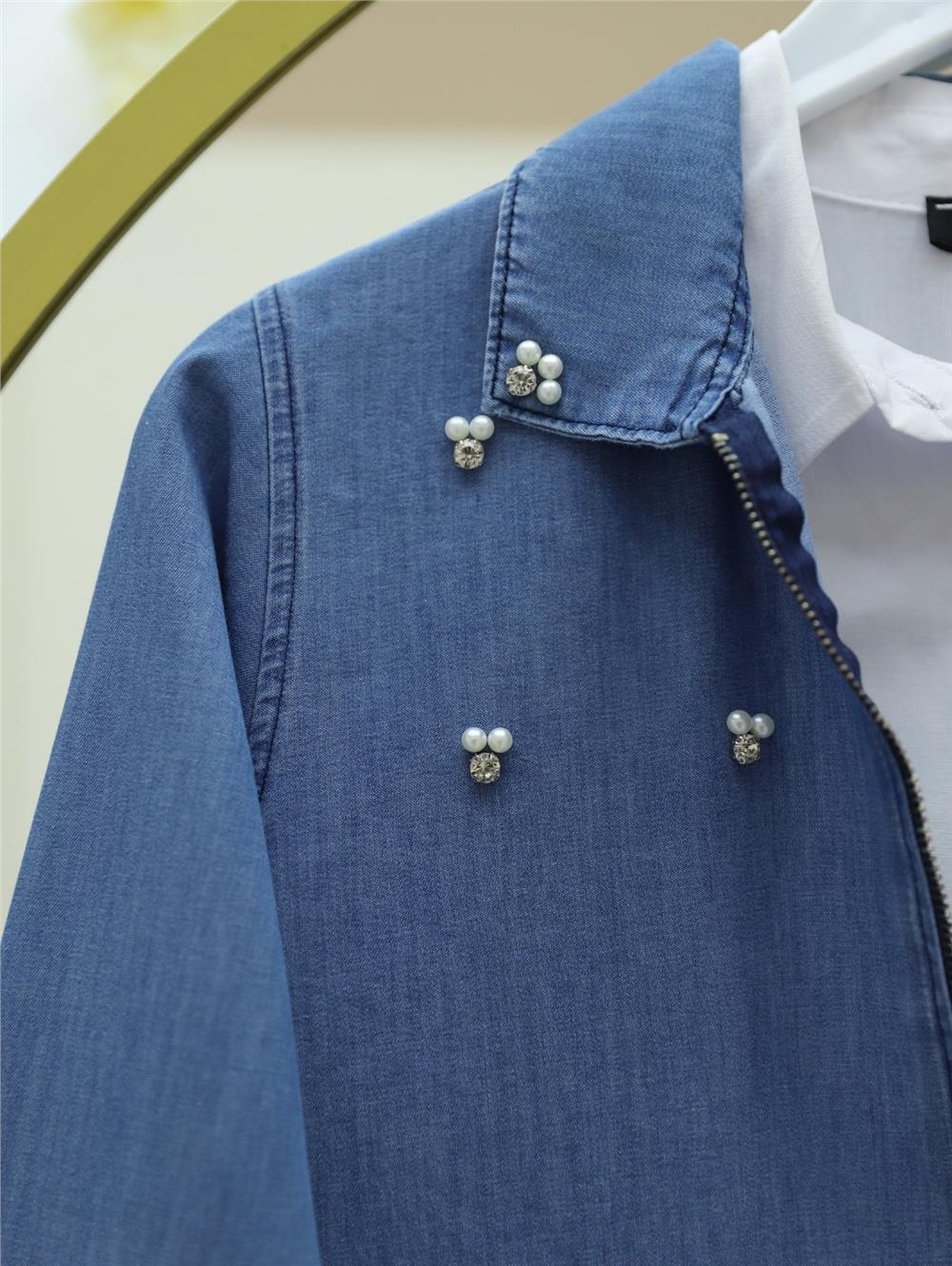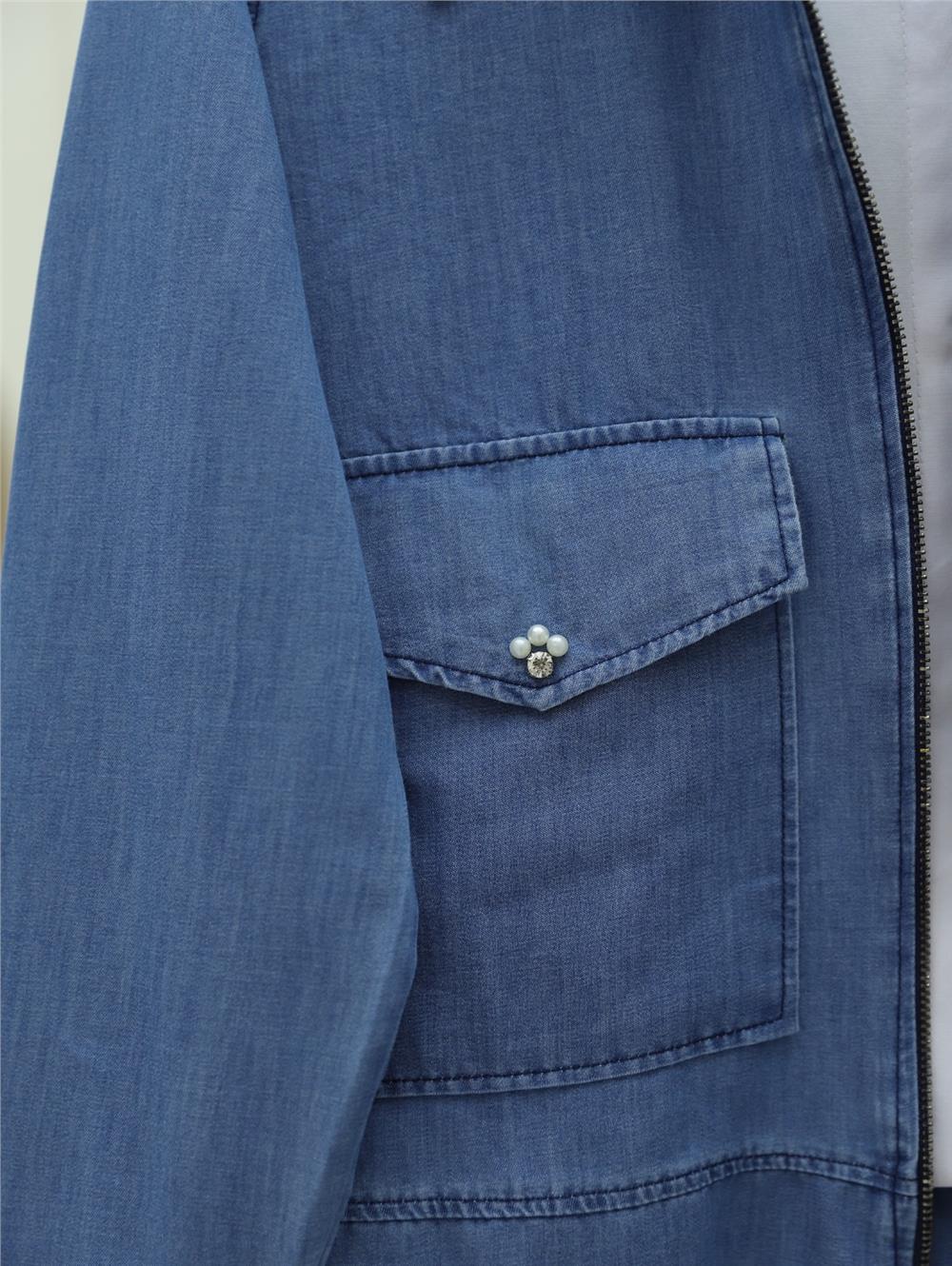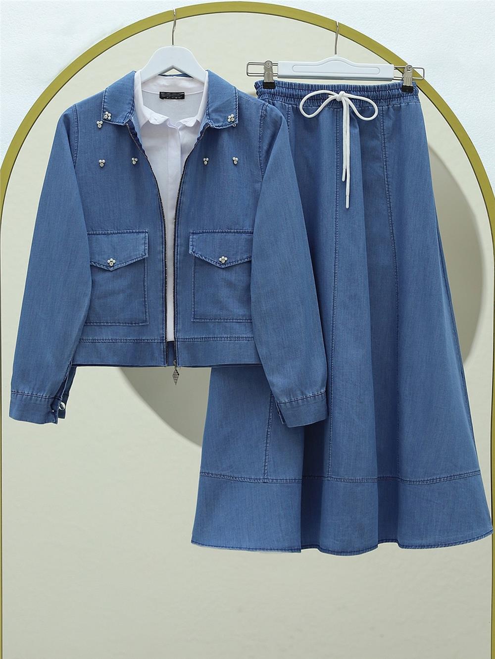 Serpme İncili Fermuarlı Ceket Etek Kot Takım -Mavi (186-4464-R31)