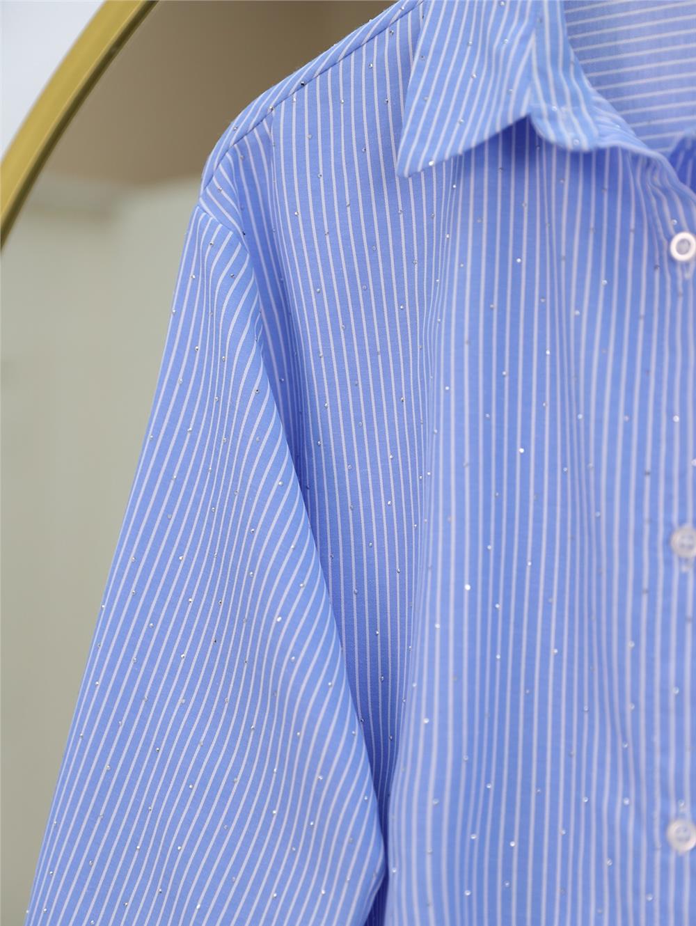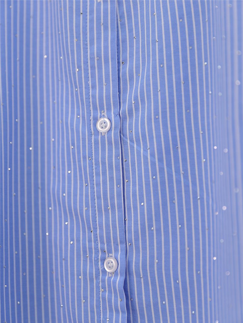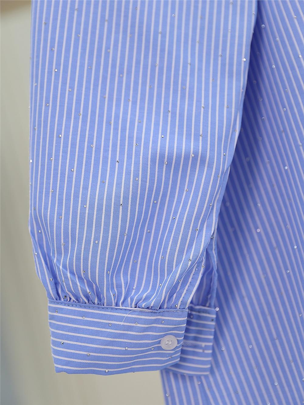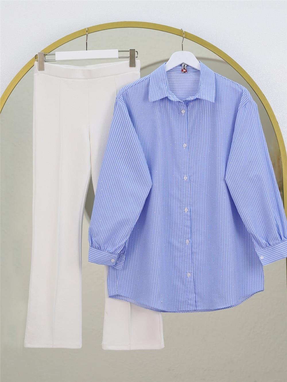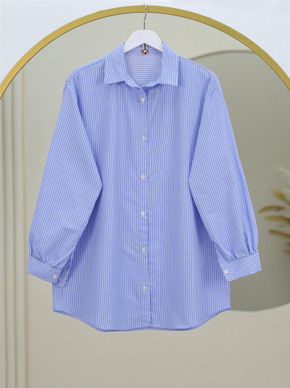 Serpme Taş Detaylı Çizgili Gömlek -Mavi (120-2828-R31)