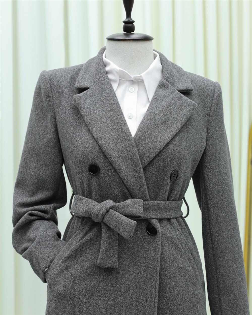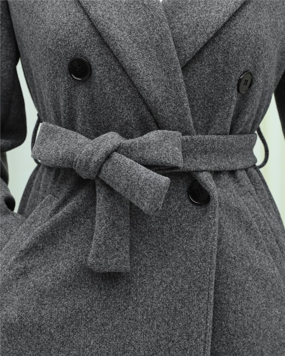 Tek Düğmeli Cepli Kemerli Astarlı Kaşe Kaban -Füme (197-4911-R18)