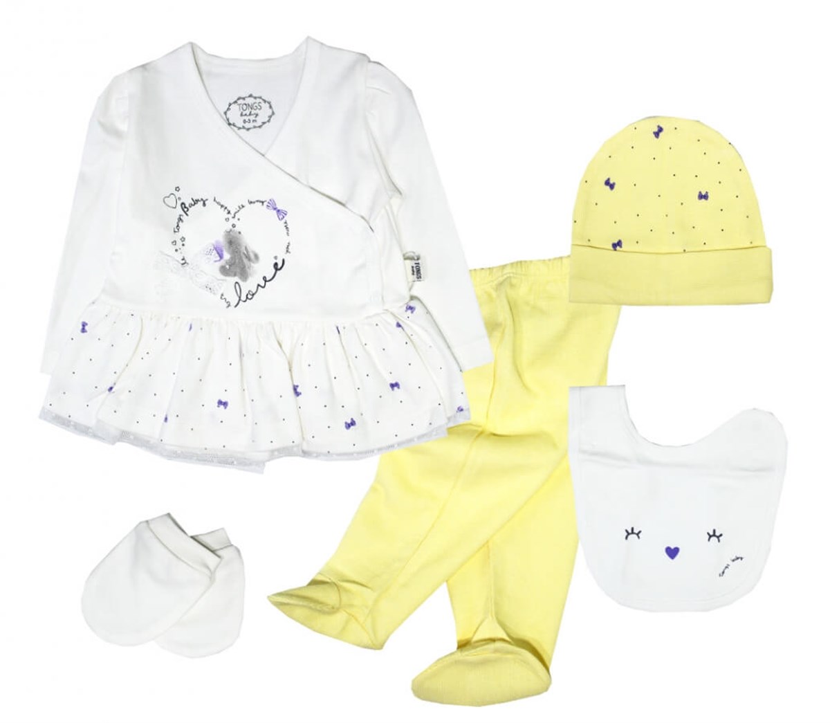 Tongs Baby Cute Bunny 5'li Zıbın Takım 0-3 Ay Hastane Çıkışı -Sarı (2695-Sarı)