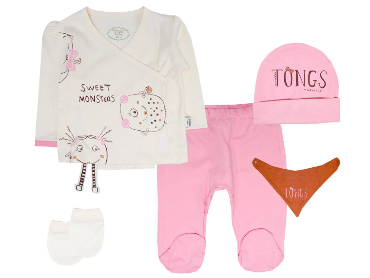 Tongs Baby Sweet Monsters 5'li Zıbın Takım 0-3 Ay Hastane Çıkışı -Pembe (2635-Pembe)