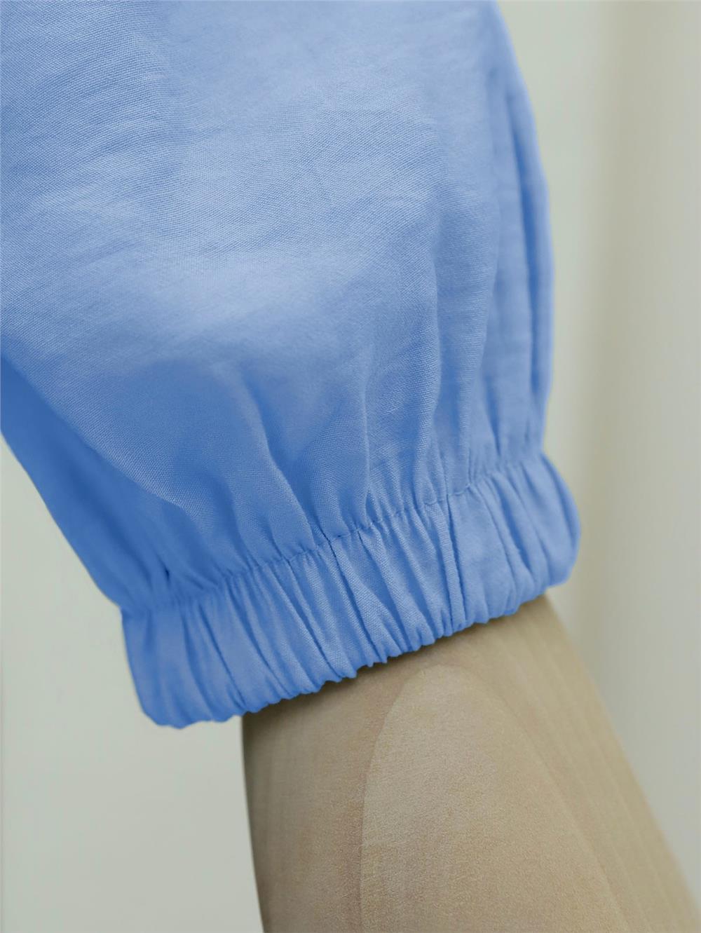 Tünel Bağcıklı Düğmeli Gömlek Bluz -Bebe Mavi (398-1004-R32)