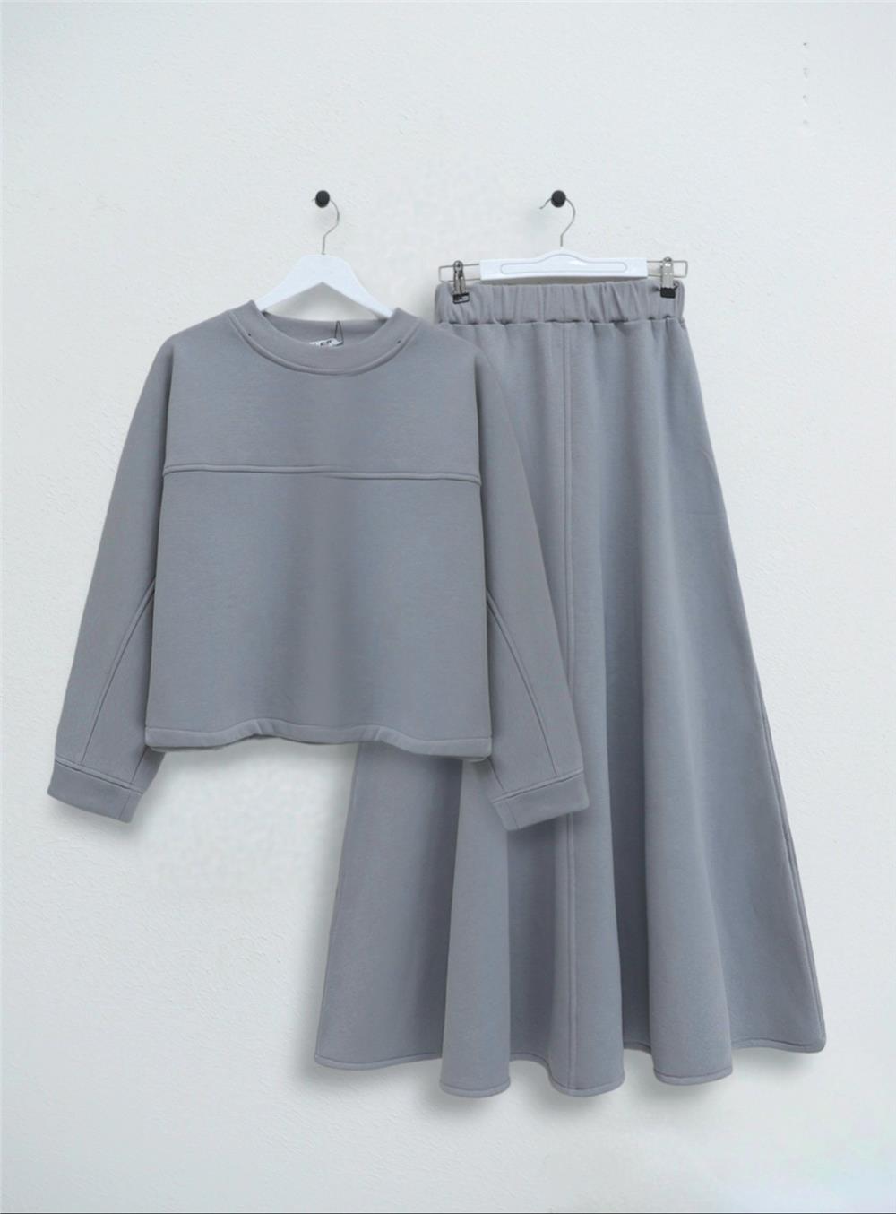 Üç İplik Şardonlu Etekli Takım -Gri (102-3118-R11)