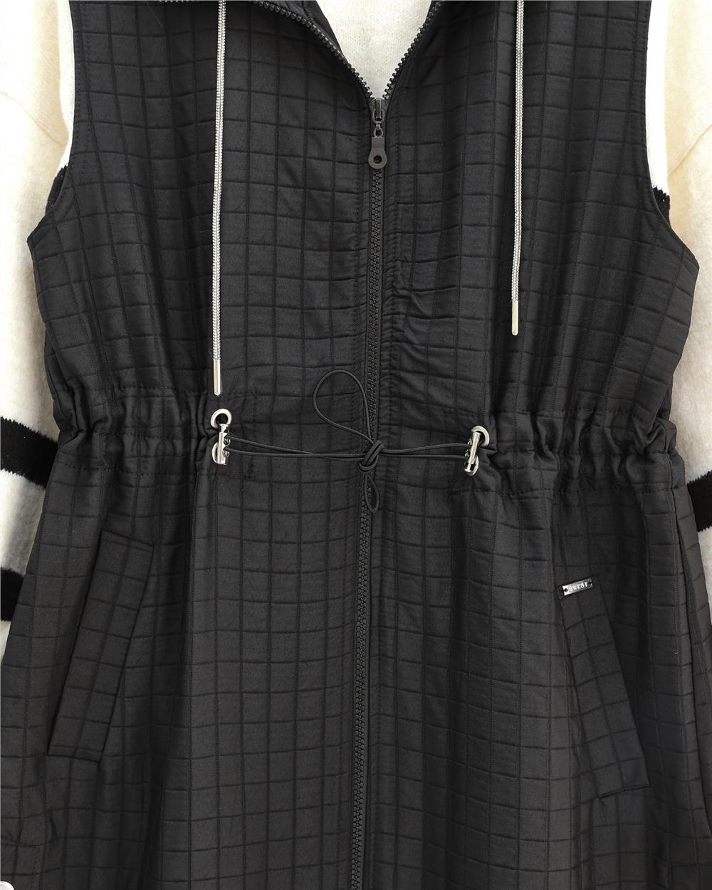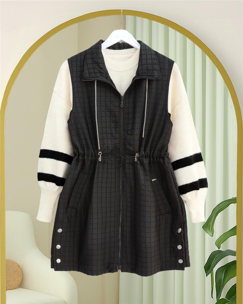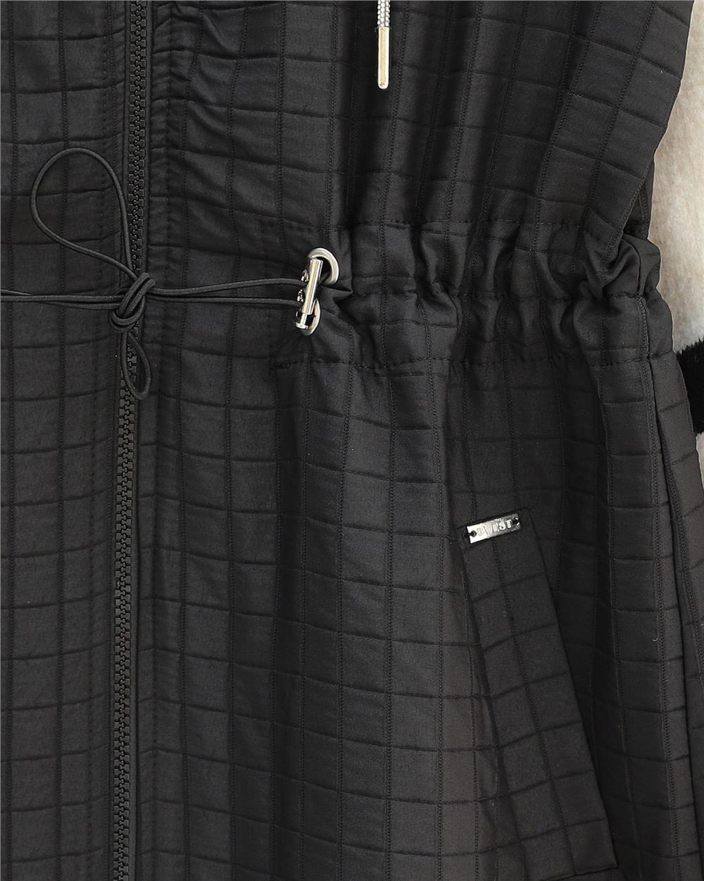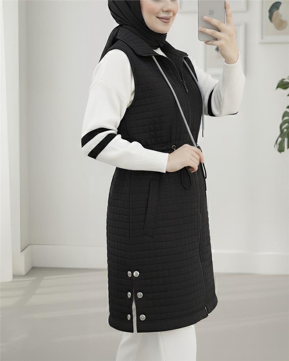 Yakası Bağcıklı Beli Lastikli Cepli Kapitone Yelek -Siyah (332-71210-R01)