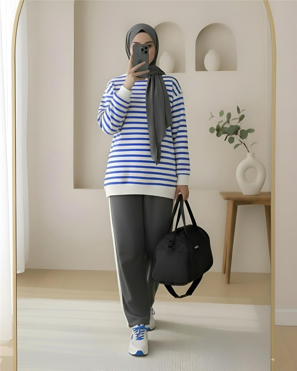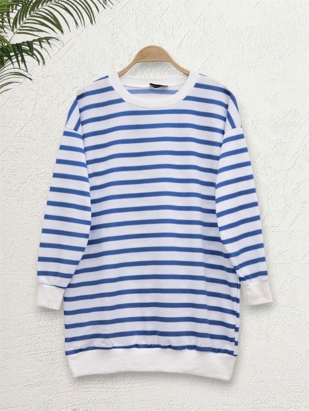 Yan Çizgili Bisiklet Yaka Sweat -İndigo (349-1079-R21)