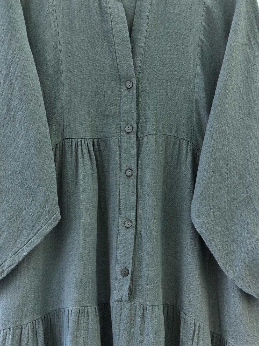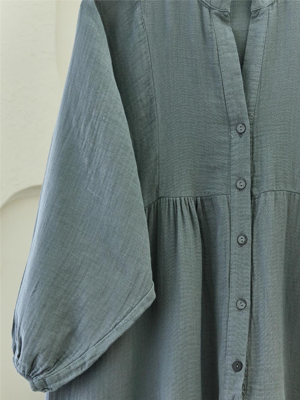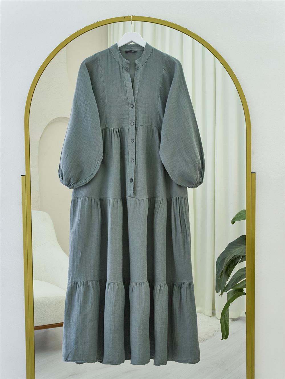 Yarım Düğmeli Parçalı Müslin Elbise -Füme (207-2559-R18)