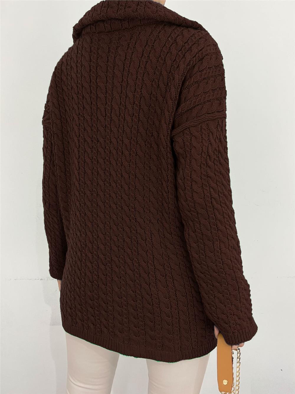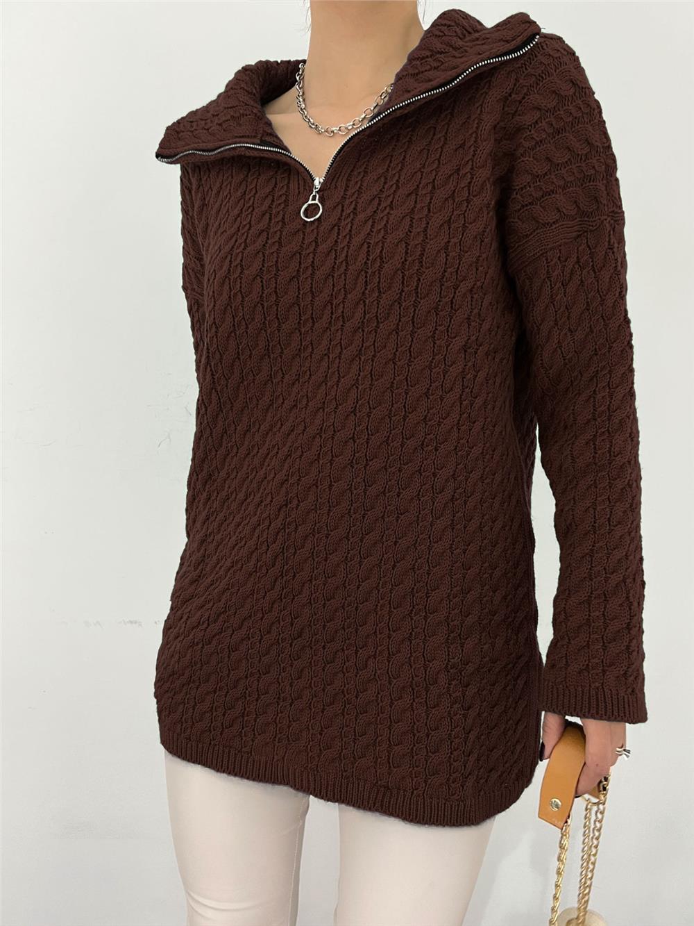 سترة تريكو شتوية نصف سحاب بياقة مدورة - بني (351-5148-R15)