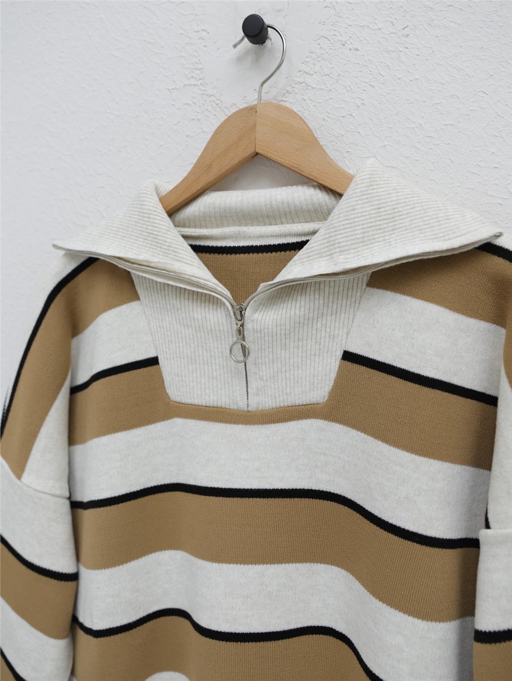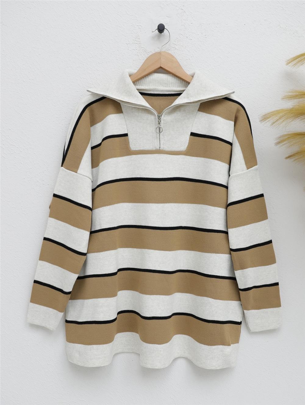 تونيك تريكو بياقة مدورة نصف سحاب - حجري (357-5210-R43)