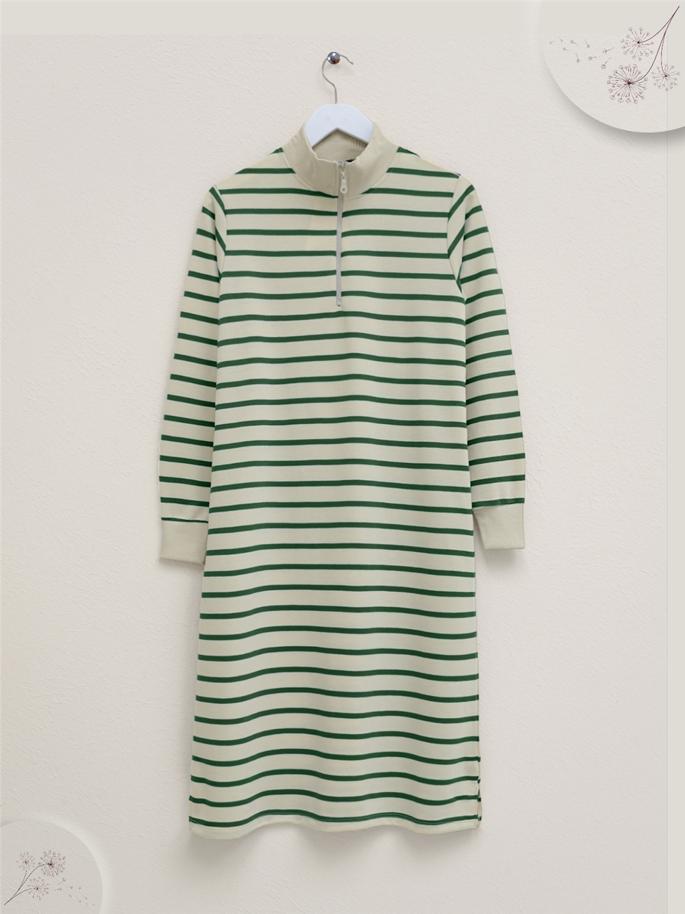 تونيك مخطط بنصف سحاب - زمرد (349-4094-R17)