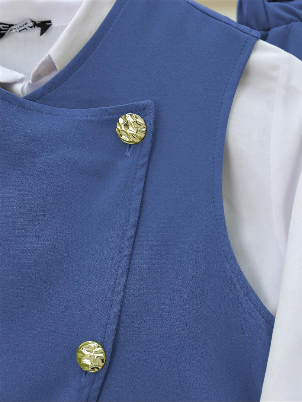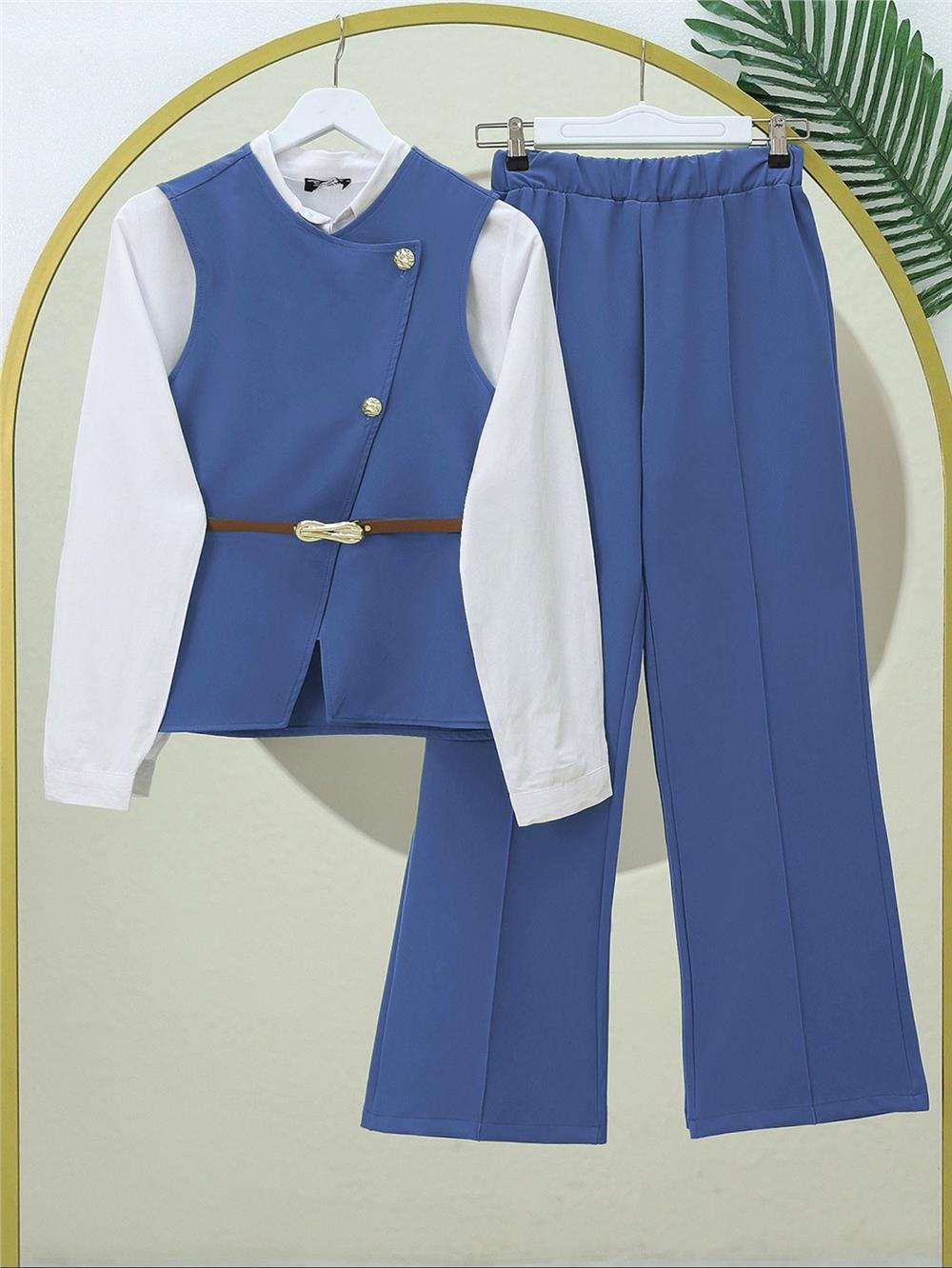 Yeleği Kemerli Bol Paça Pantololu Takım -İndigo (398-4004-R21)