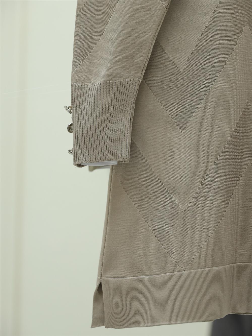 Zikzak Desenli Yırtmaçlı Triko Tunik -Açık Vizon (280-3183-R51)