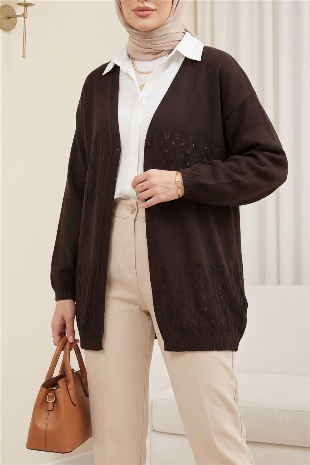 Araboy Ajurlu Triko Hırka -K. Kahve (109-9201-R54)