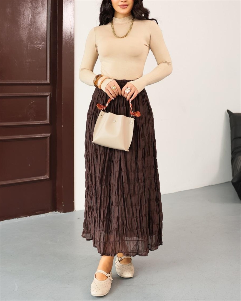 Astarlı Gipeli Modal Etek -K. Kahve (307-0084-R54)