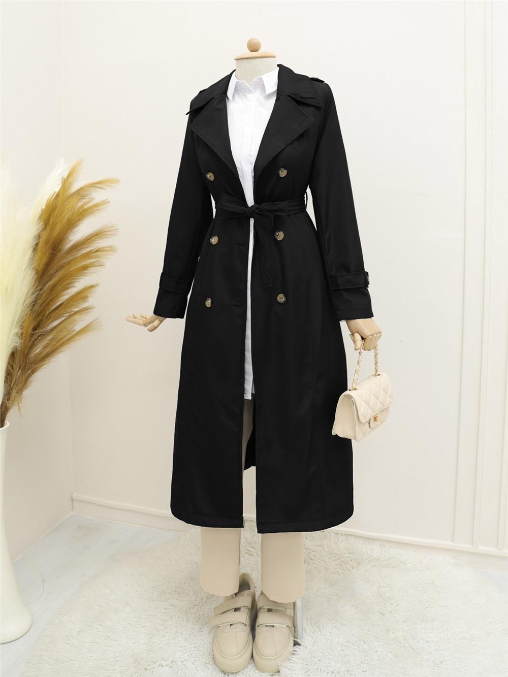 Not: Ürün içeriği trençkottan oluşmaktadır. (Gömlek, pantolon, ayakkabı, çanta ve takılar dekor amaçlı kullanılmaktadır.)
