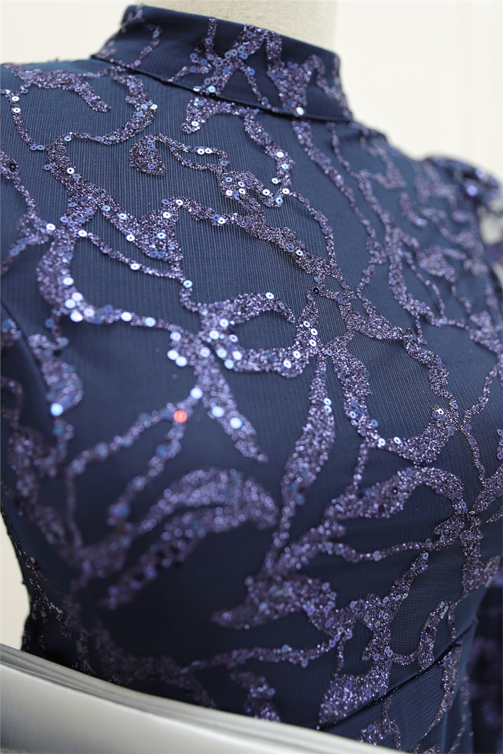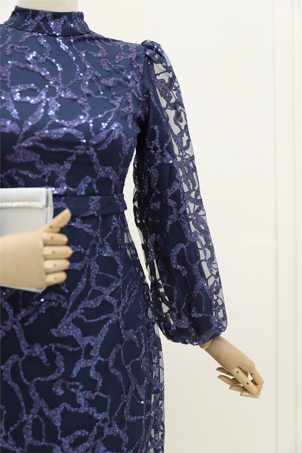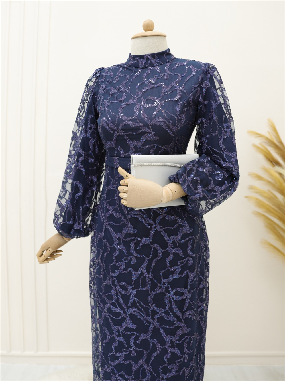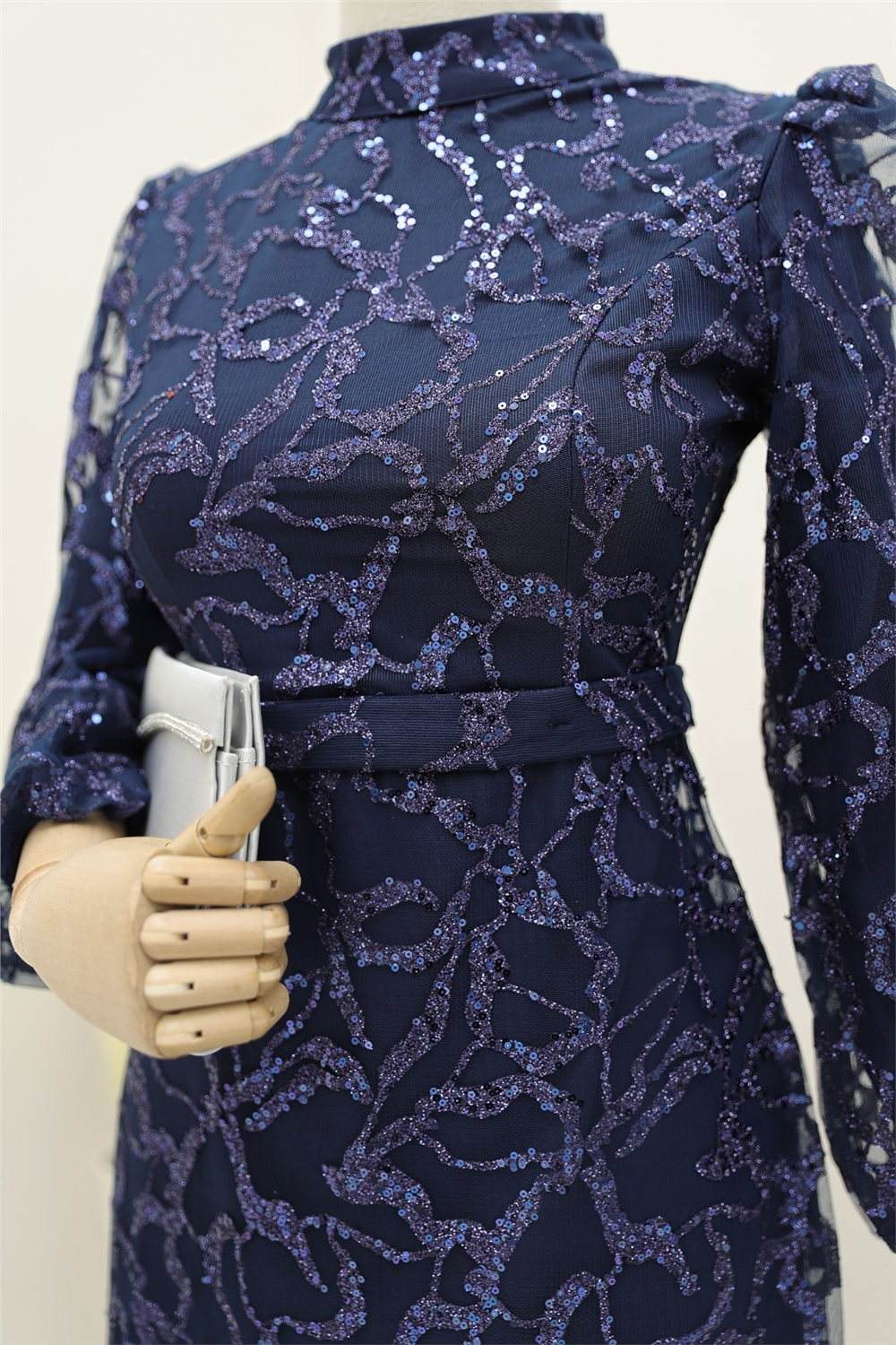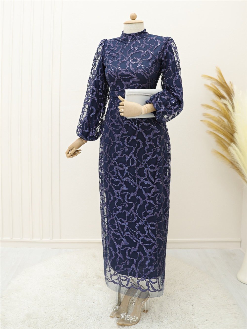 Hakim yaka, simli, arkadan fermuarlı, astarlı tül abiye modelimiz yeni sezonun en rağbet gören parçalarındandır.