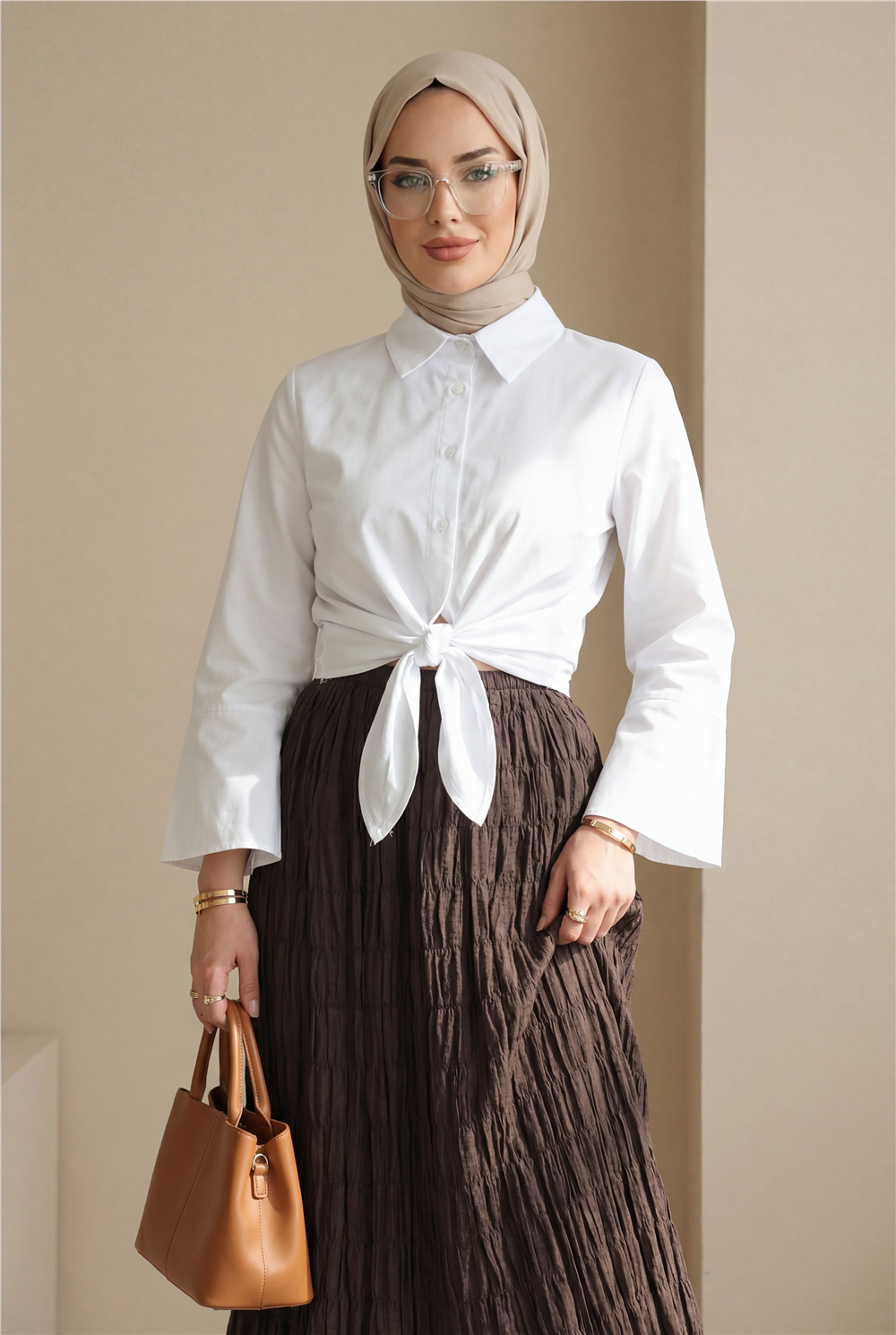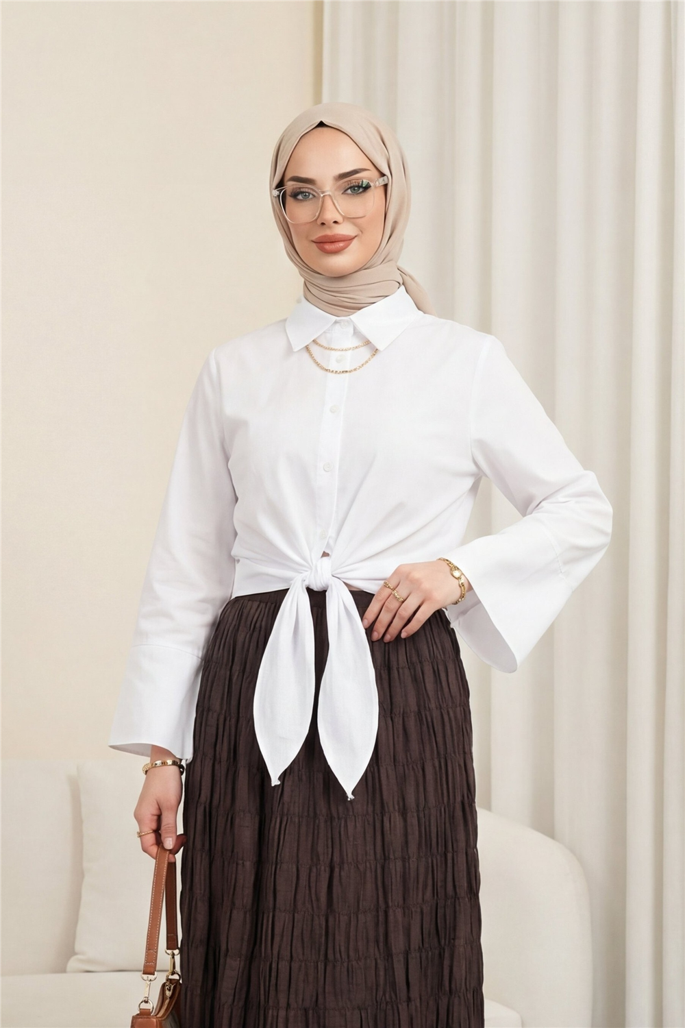 Poplin kumaşın hafif ve nefes alabilen yapısı gün boyu konfor sunar. Bu model; beli bağlamalı gömlek, poplin şık bluz, feminen kesim gömlek modeli ve mevsimlik kadın bluz aramalarında öne çıkar.