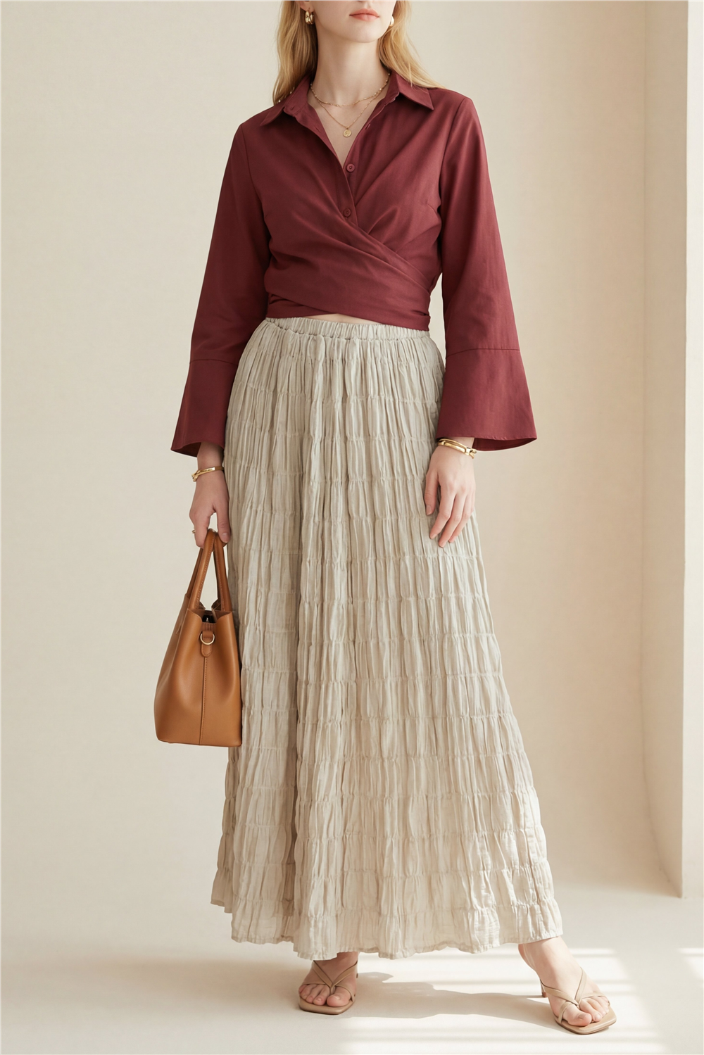 Poplin kumaşın hafif ve nefes alabilen yapısı gün boyu konfor sunar. Bu model; beli bağlamalı gömlek, poplin şık bluz, feminen kesim gömlek modeli ve mevsimlik kadın bluz aramalarında öne çıkar.
