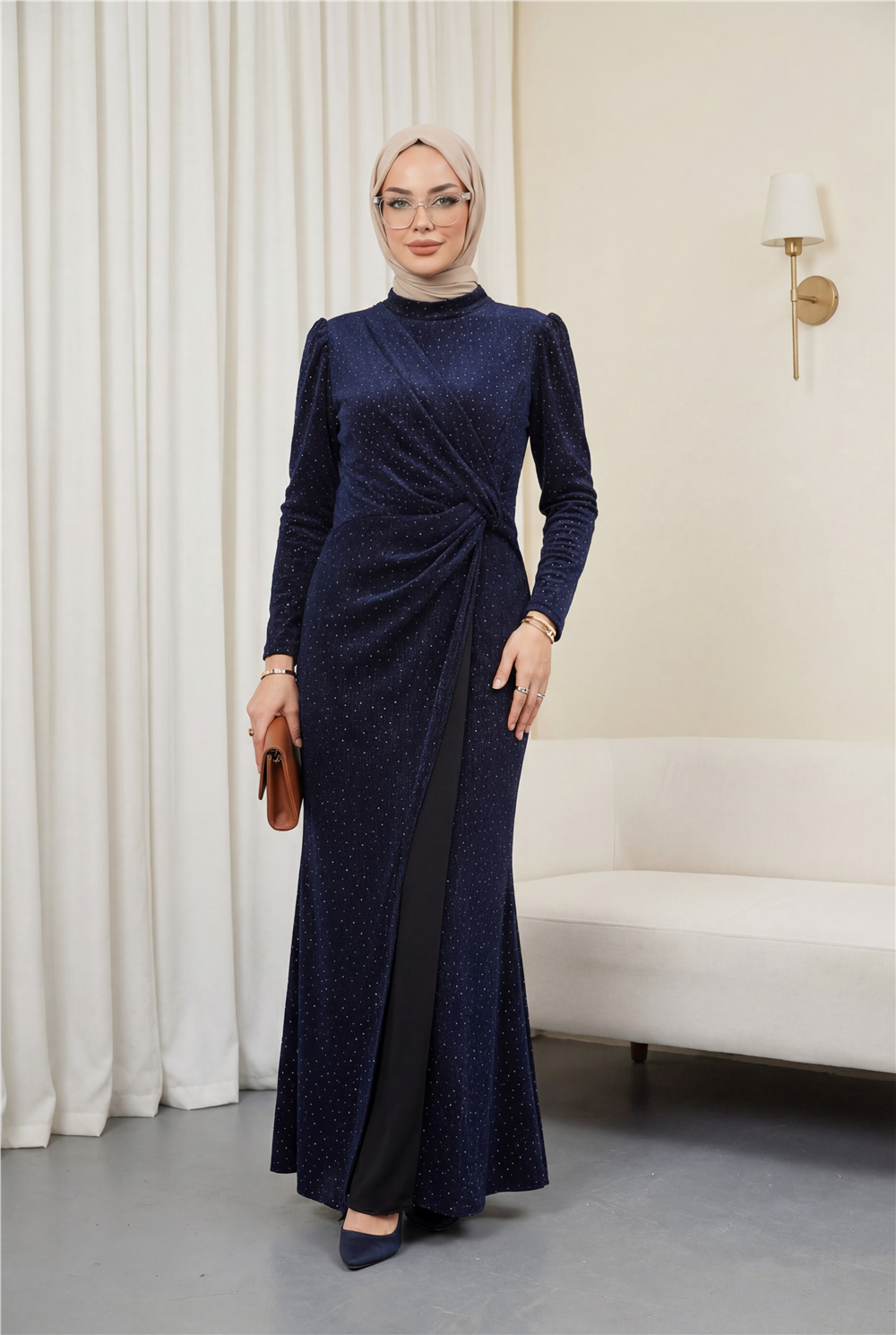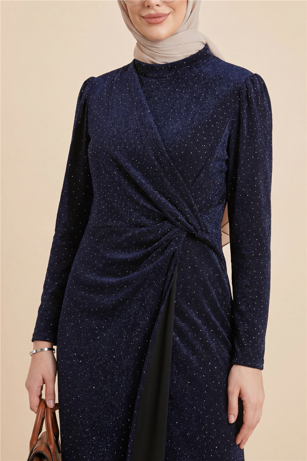 “taş detaylı abiye elbise”, “drapeli şık elbise”, “çift kat elbise”, “özel davet elbisesi” gibi adlandırılabilir.