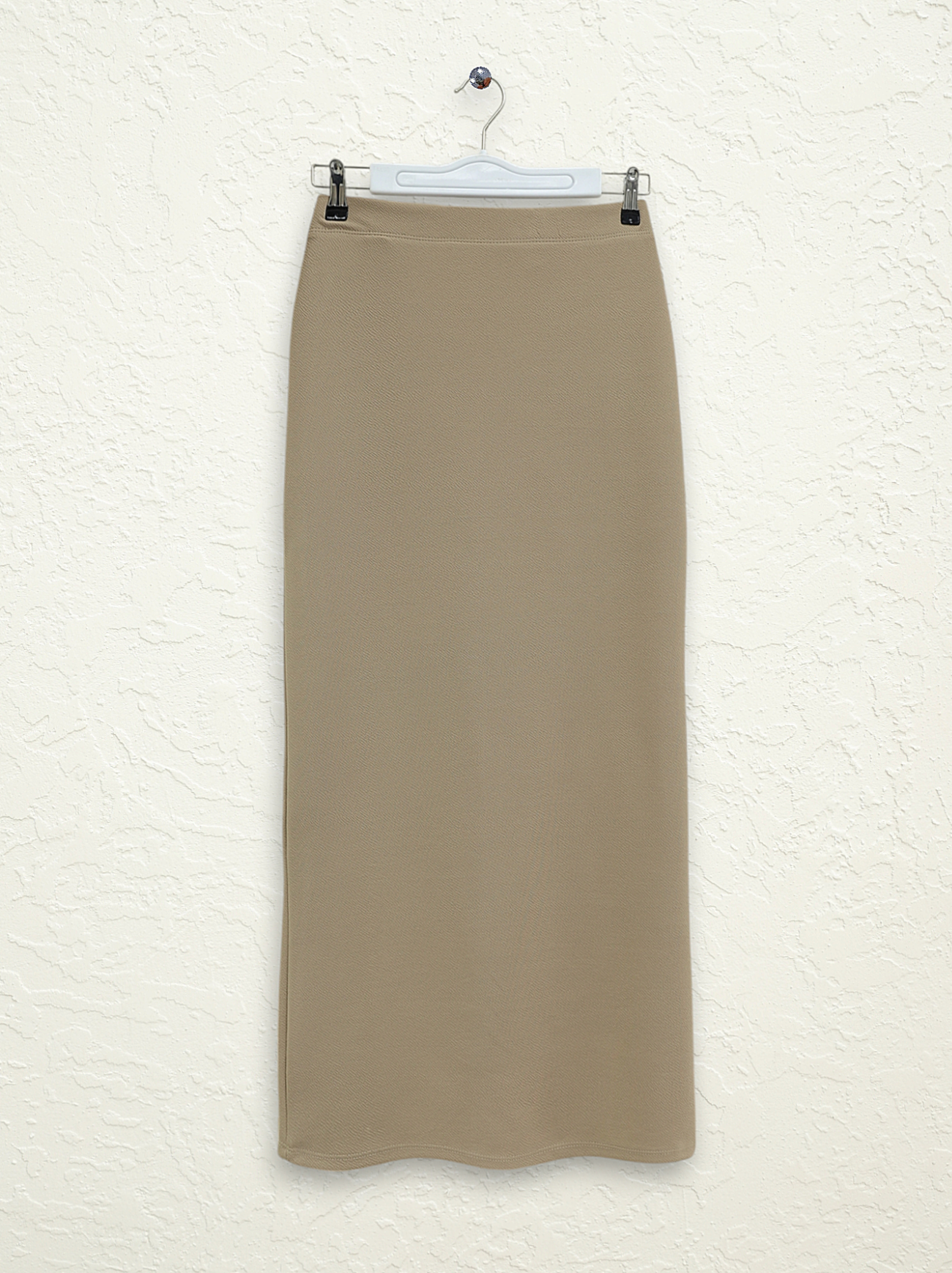 Beli Lastikli Krep Kalem Etek -Vizon (349-2810-R23)