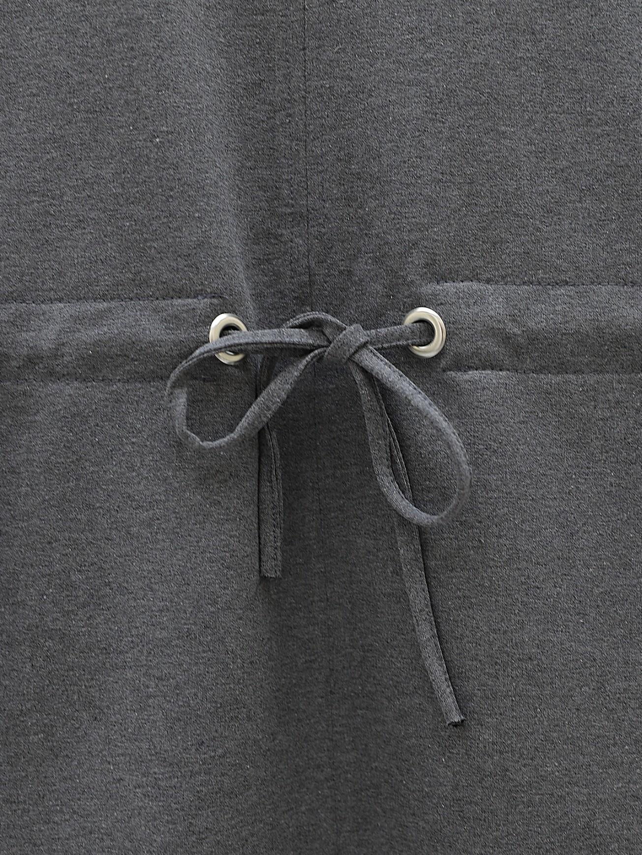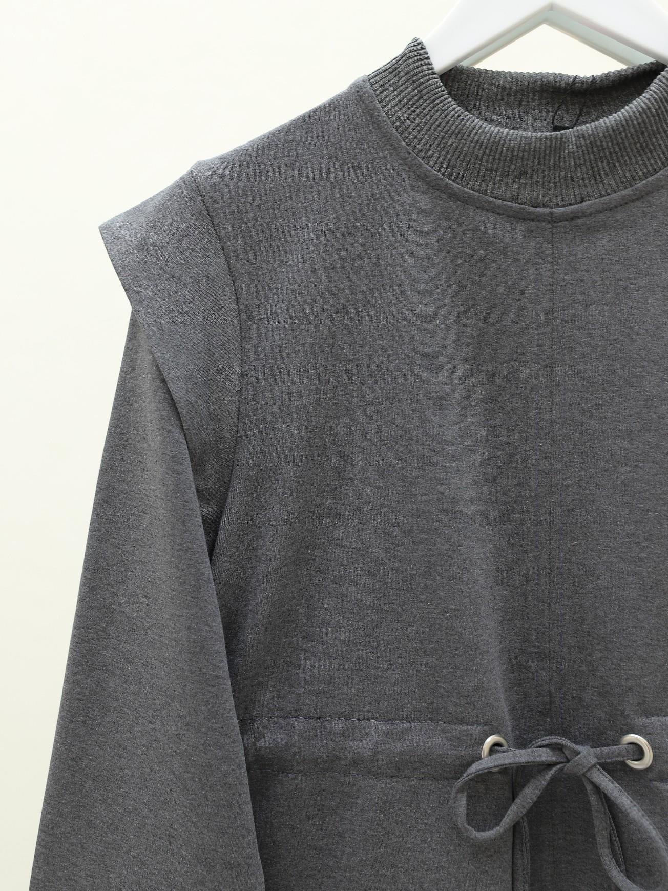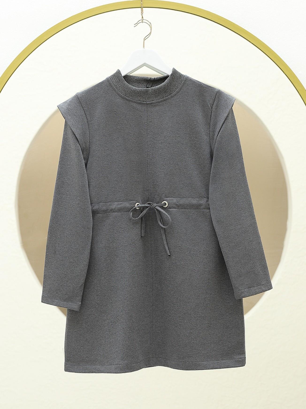 Beli Tünel Bağcıklı Dik Yaka Tunik -Füme (349-6049-R18)