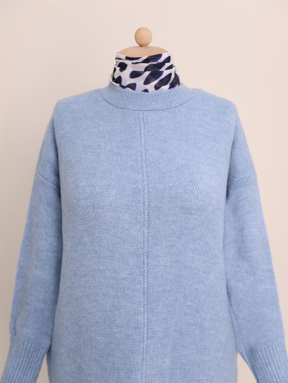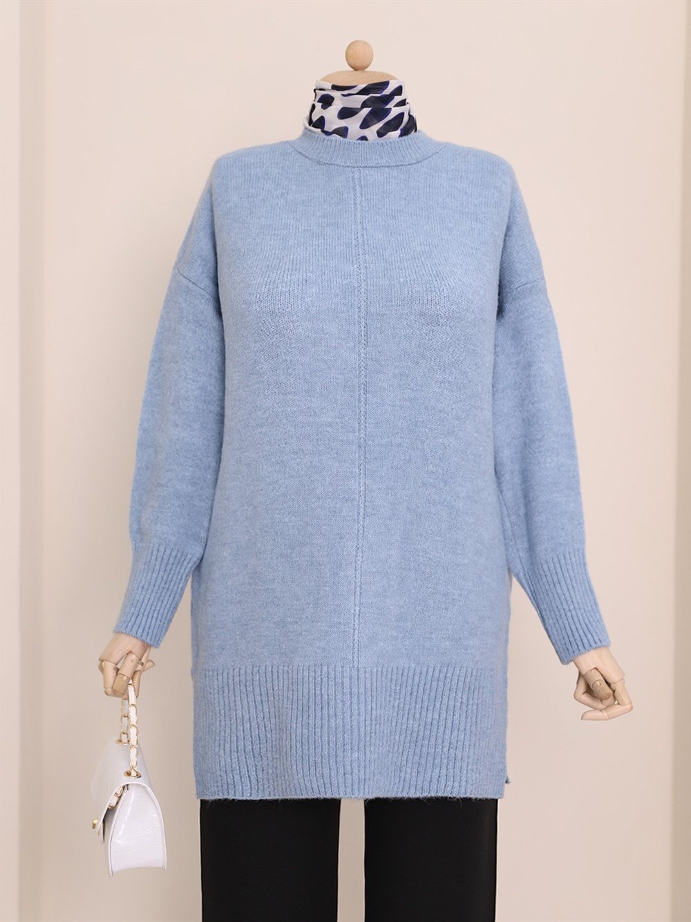 Bisiklet Yaka Tesettür Kışlık Triko Tunik -Bebe Mavi (109-0200-R32)