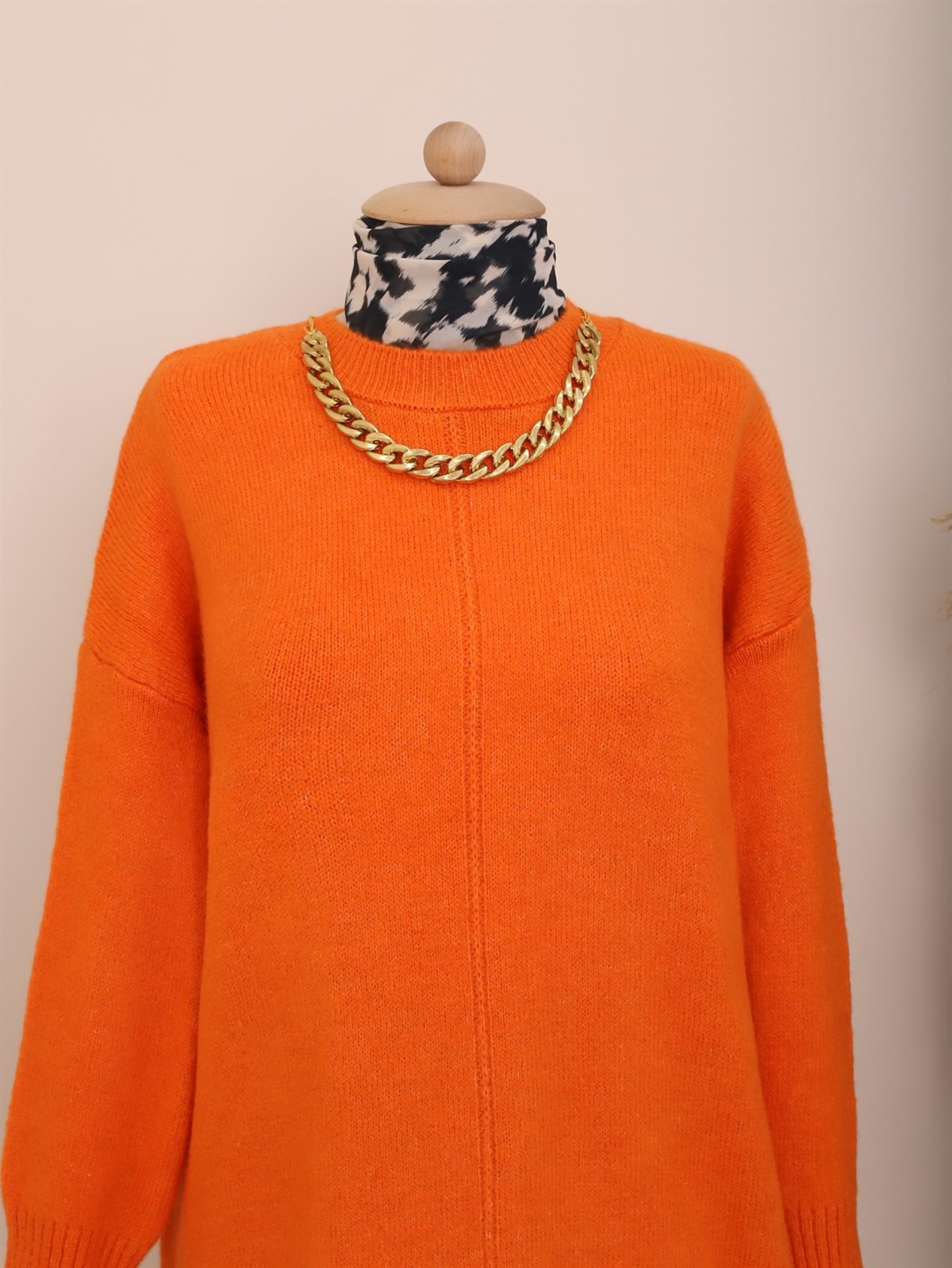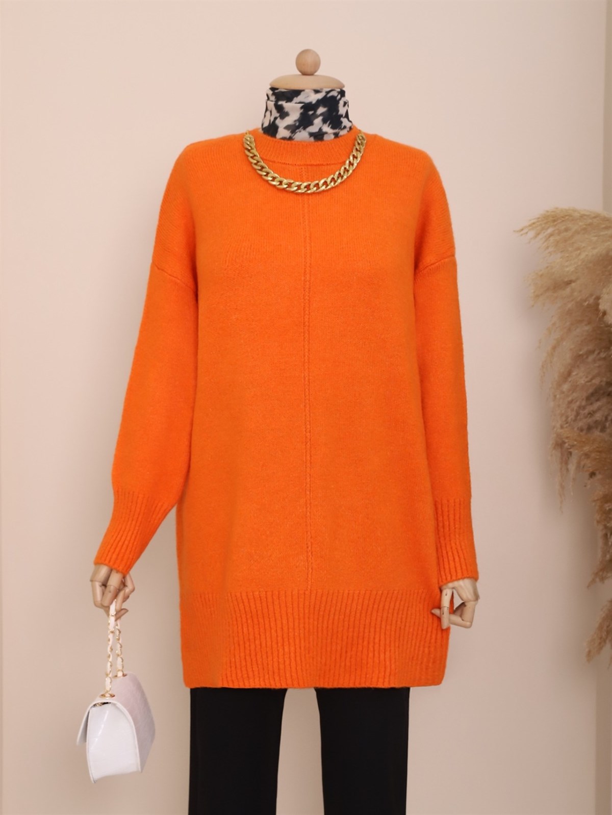 Bisiklet Yaka Tesettür Kışlık Triko Tunik -Turuncu (109-0200-R16)