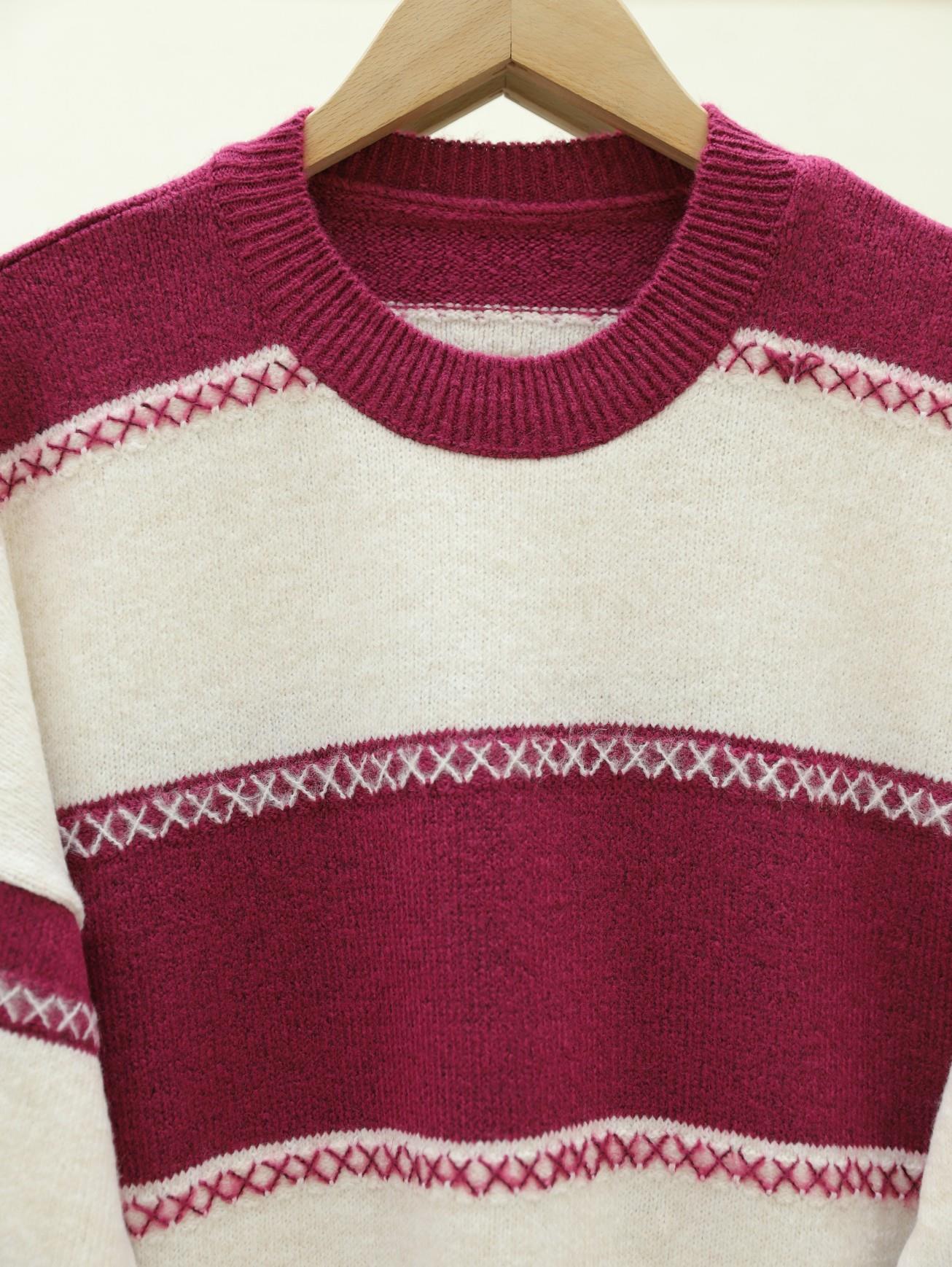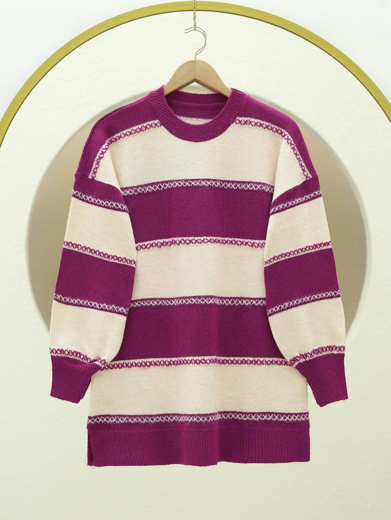 Bisiklet yaka, balon kol, çapraz çizgi desenli triko tunik modelimiz yeni sezonun en çok sevilen modelleri arasında yer almaktadır.