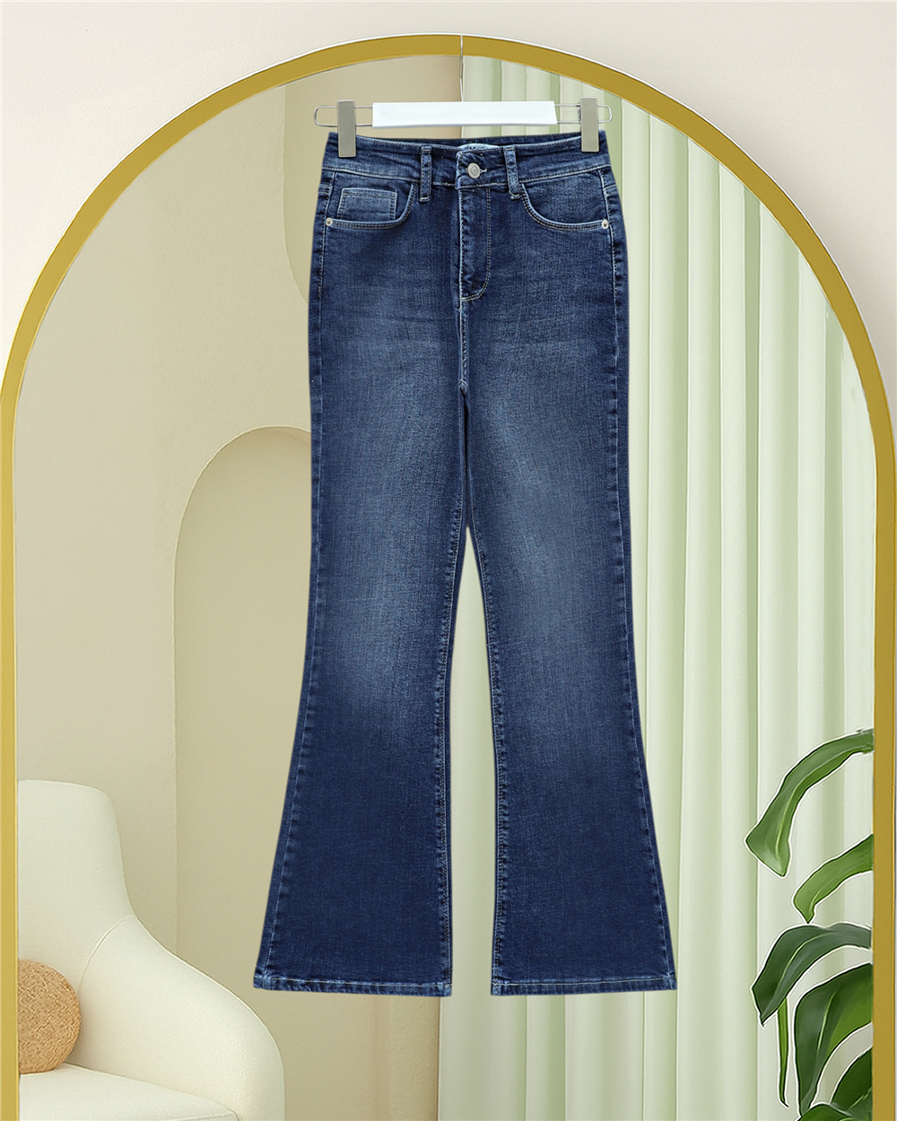 Cepli İspanyol Paça Likralı Fermuarlı Kot Pantolon -İndigo (136-3008-R21)