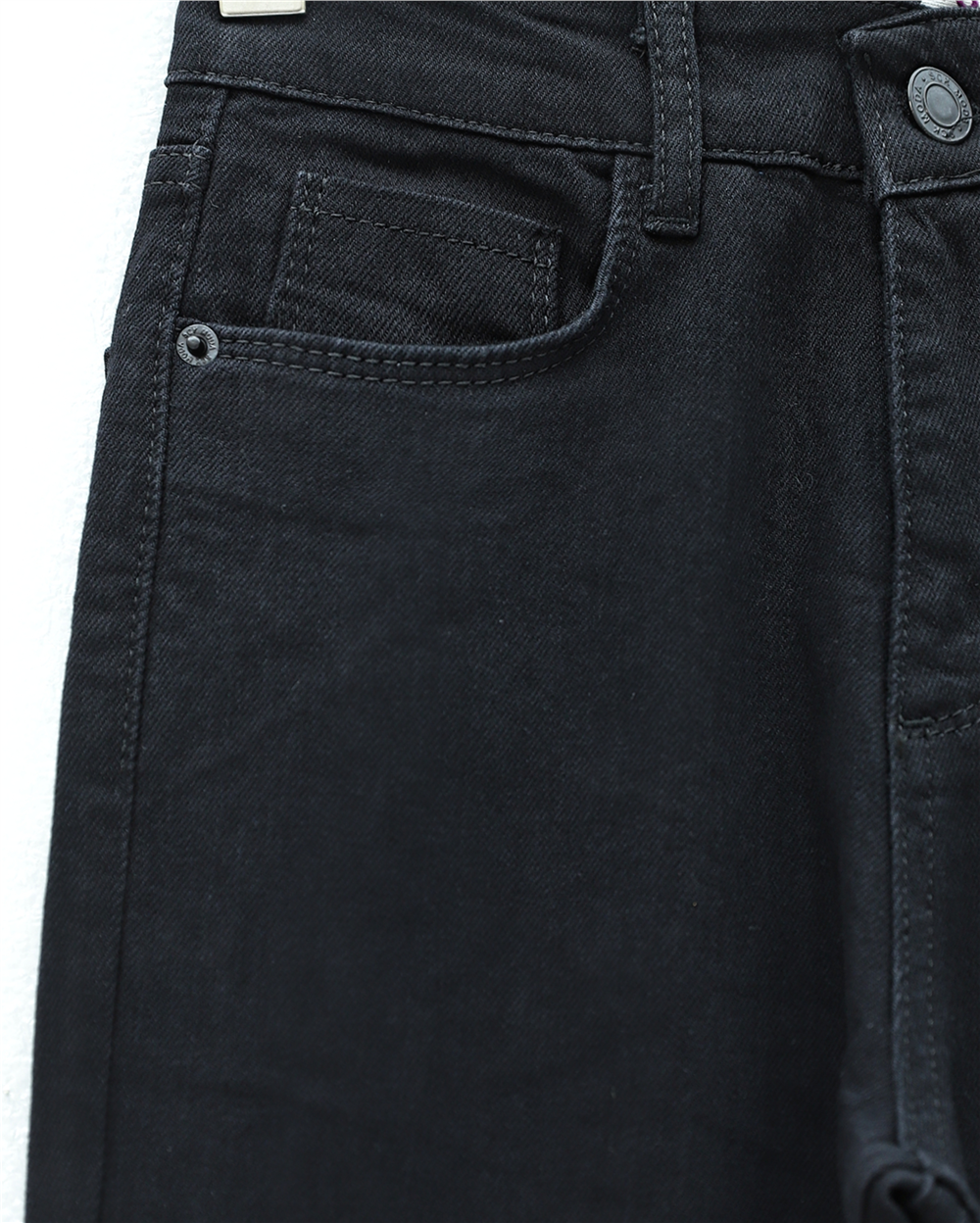 Cepli İspanyol Paça Likralı Fermuarlı Kot Pantolon -Siyah (136-3008-R01)