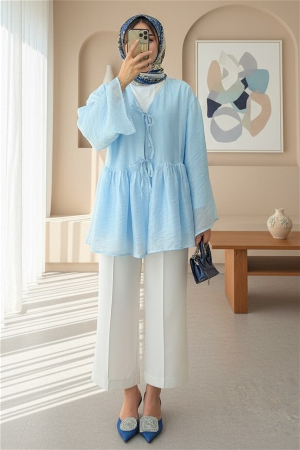 Çift Bağlamalı İçi Astarlı Modal Kimono -Bebe Mavi (307-2389-R32)