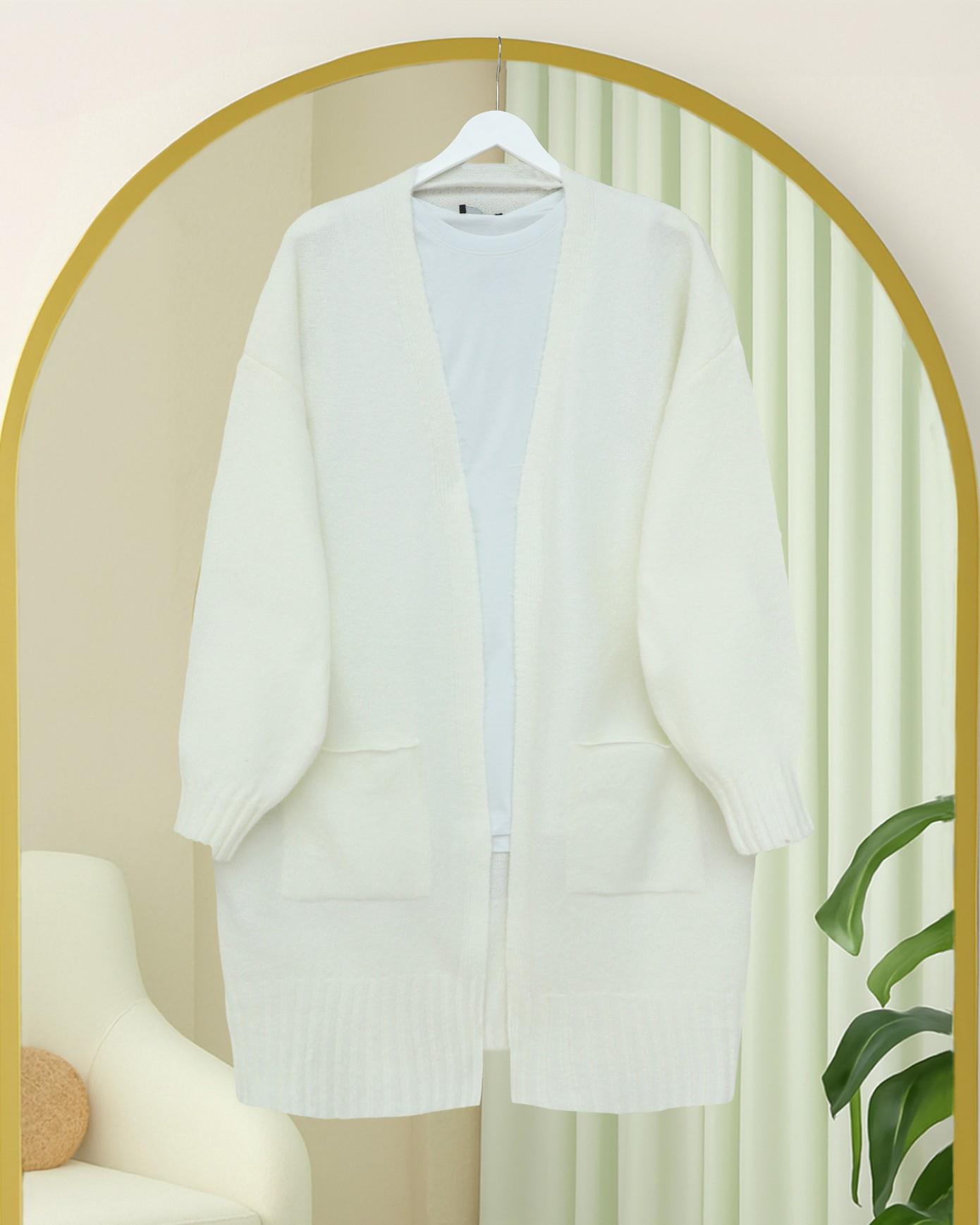 Çift Cepli Yırtmaçlı Yumoş Hırka -Beyaz (109-0083-R02)