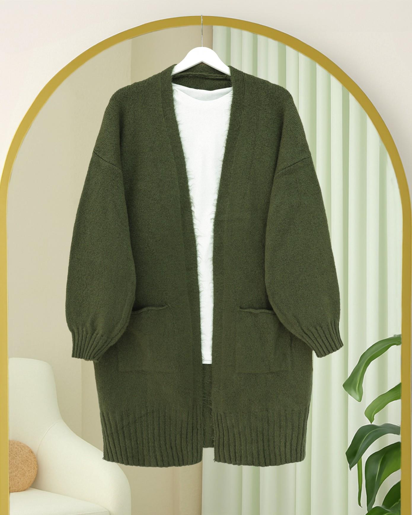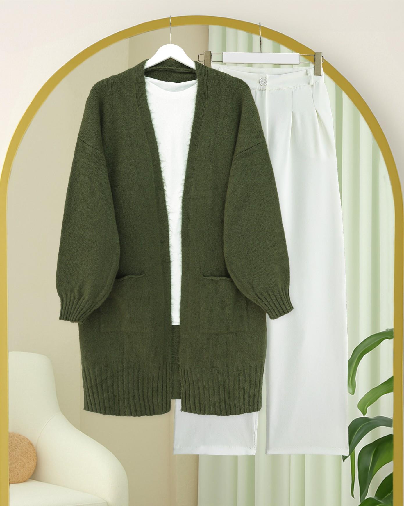 Çift Cepli Yırtmaçlı Yumoş Hırka -Haki (109-0083-R05)