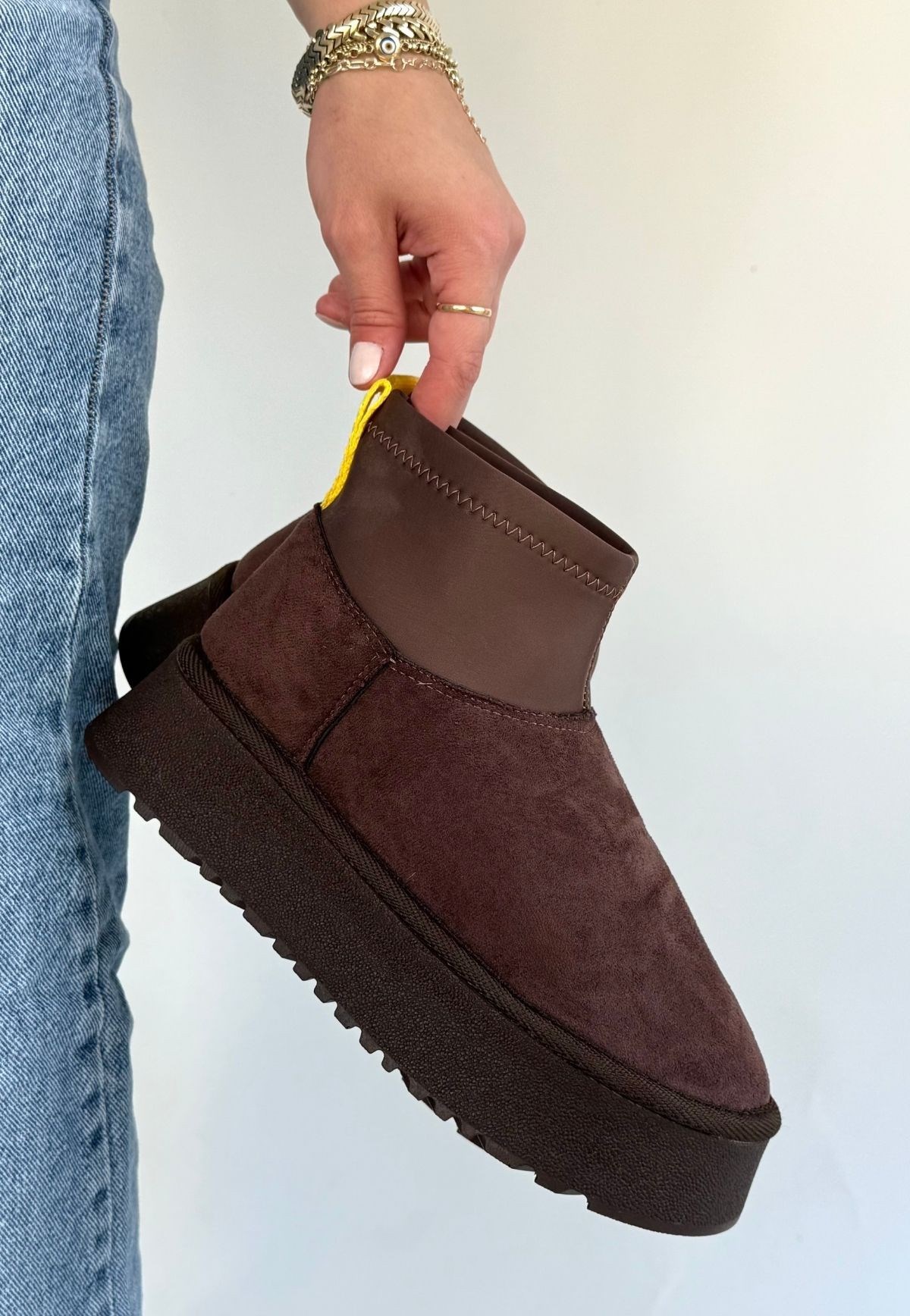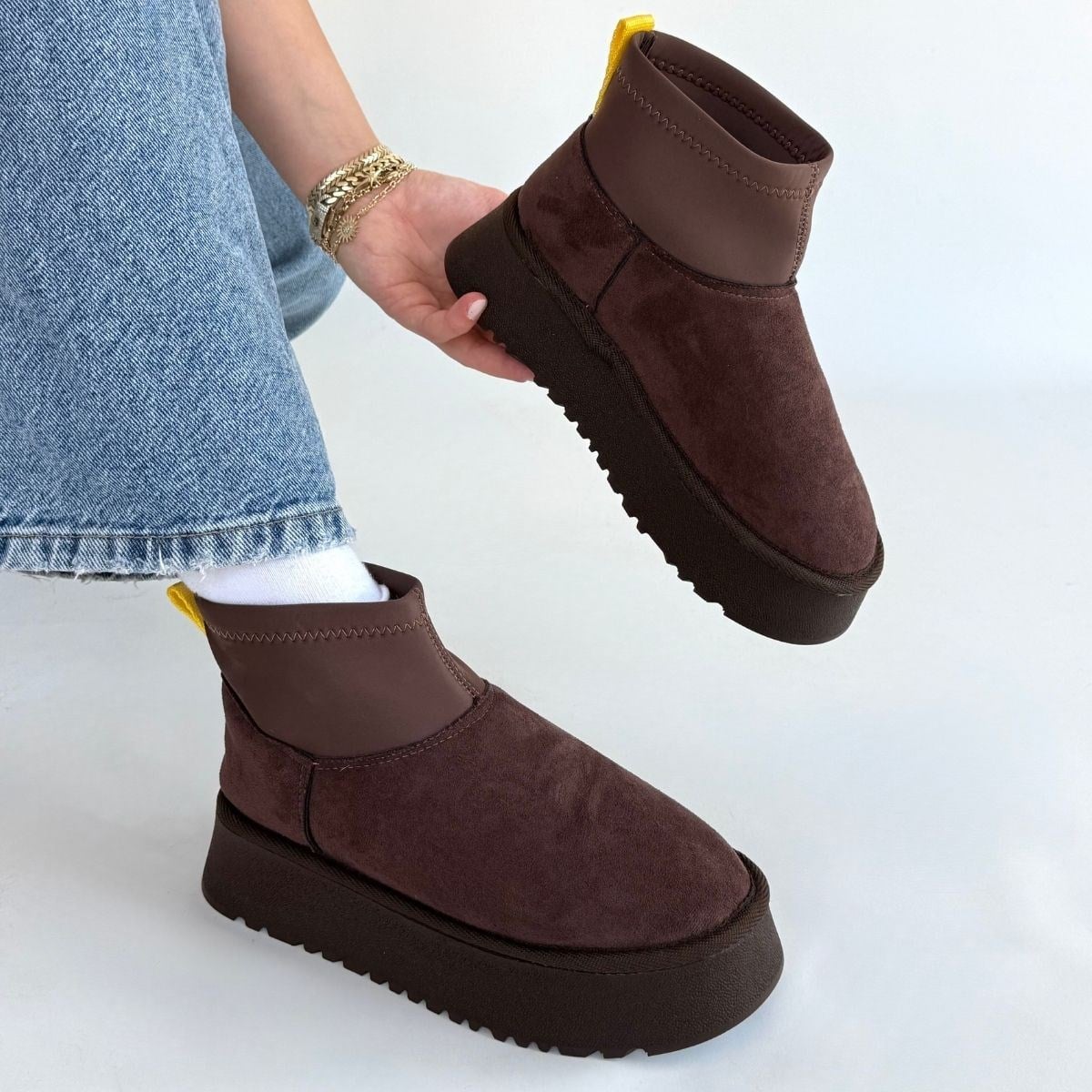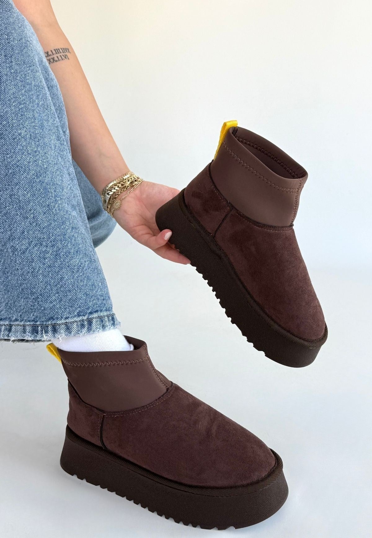Cuen Süet Bot -Kahverengi modeli, kadın bot kategorisinde, kahverengi rengiyle soğuk havalarda hem şıklık hem de fonksiyonellik arayanlar için uygun bir seçenektir.