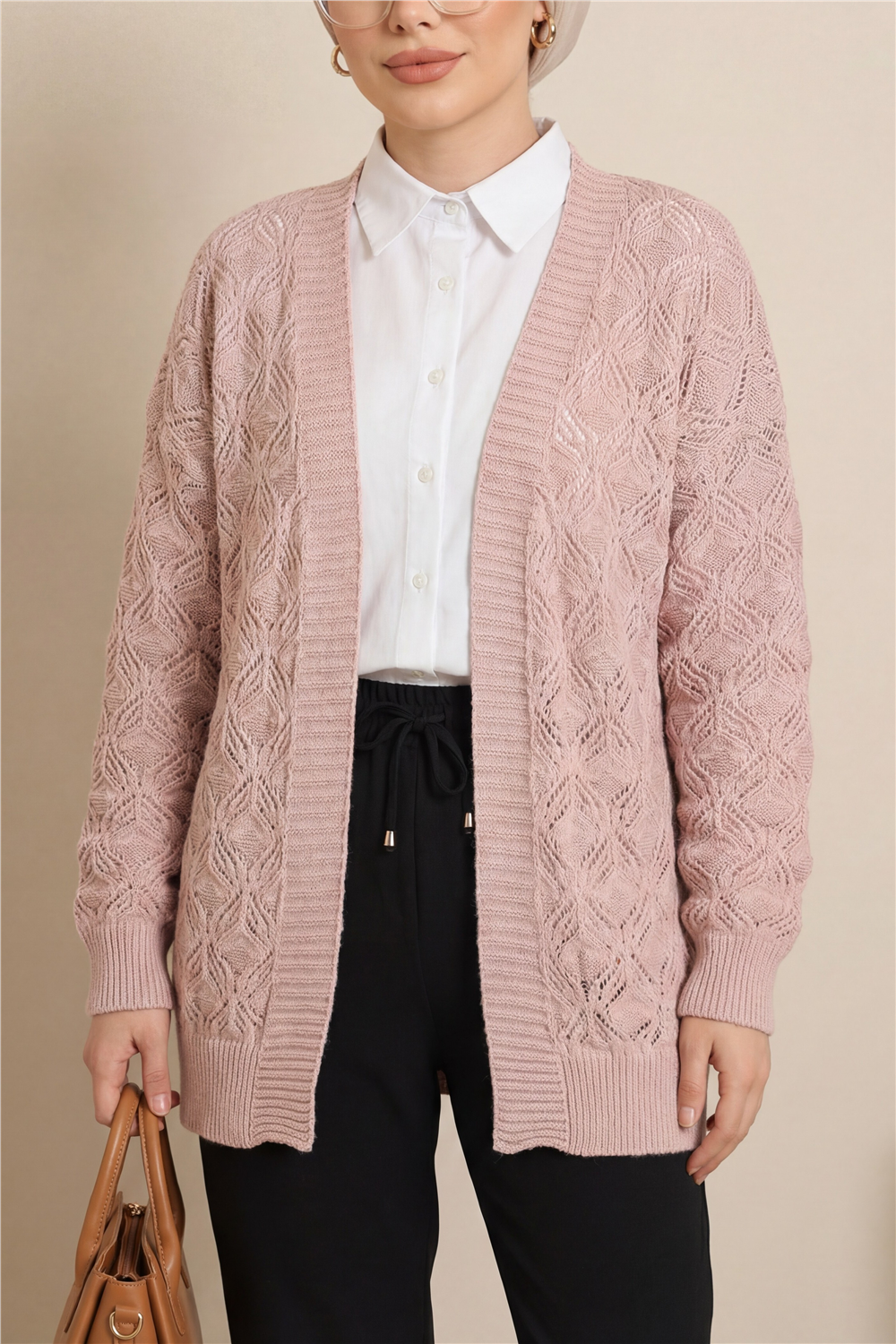 “Desenli triko hırka”, “araboy kadın hırka”, “örme hırka modeli”, “günlük şık triko hırka” gibi adlandırılabilir.