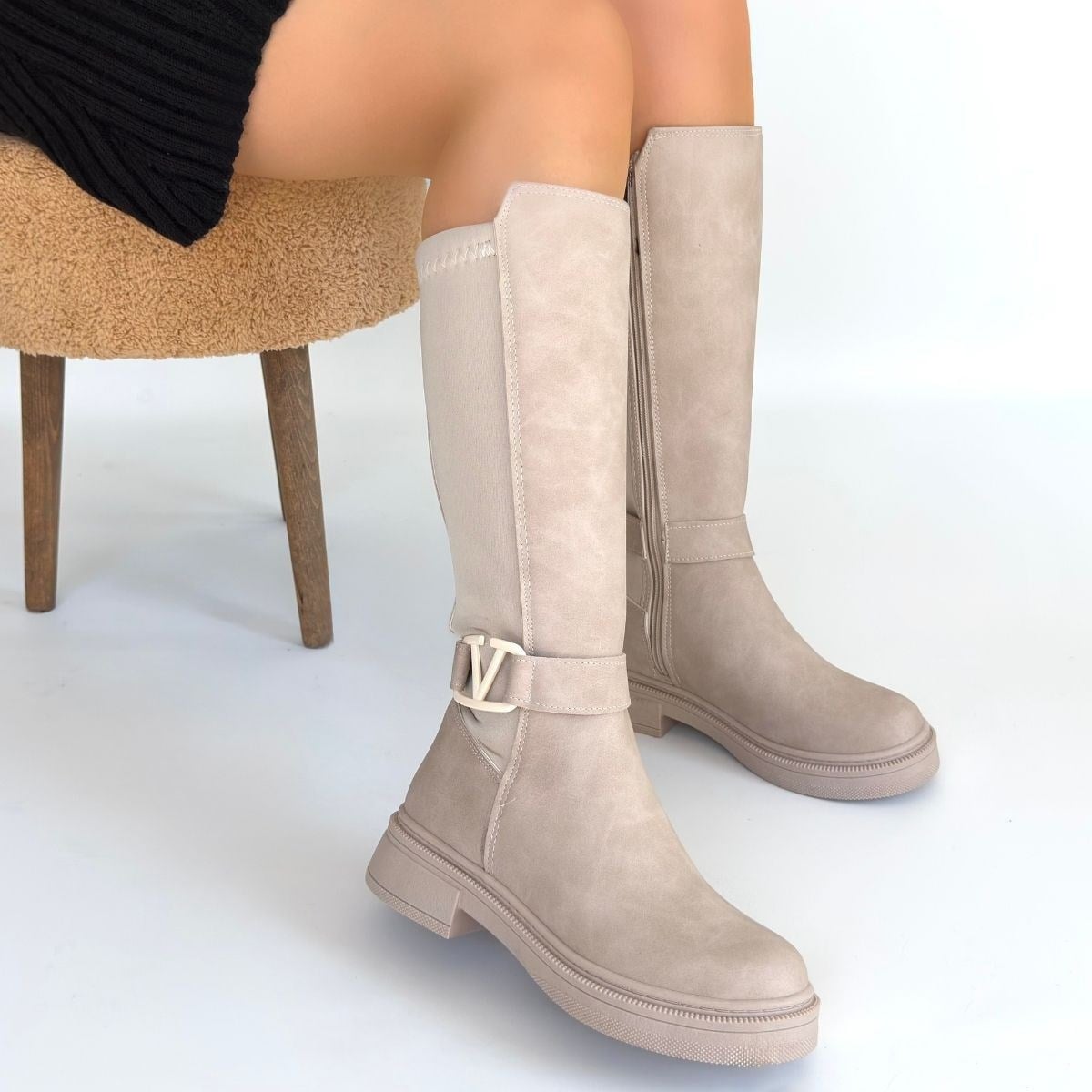 Diona Nubuk Çizme -Bej modeli, kadın çizme kategorisinde, bej rengiyle kış kombinlerinize şıklık katarken rahat kalıbıyla günlük kullanımda konfor sağlar.