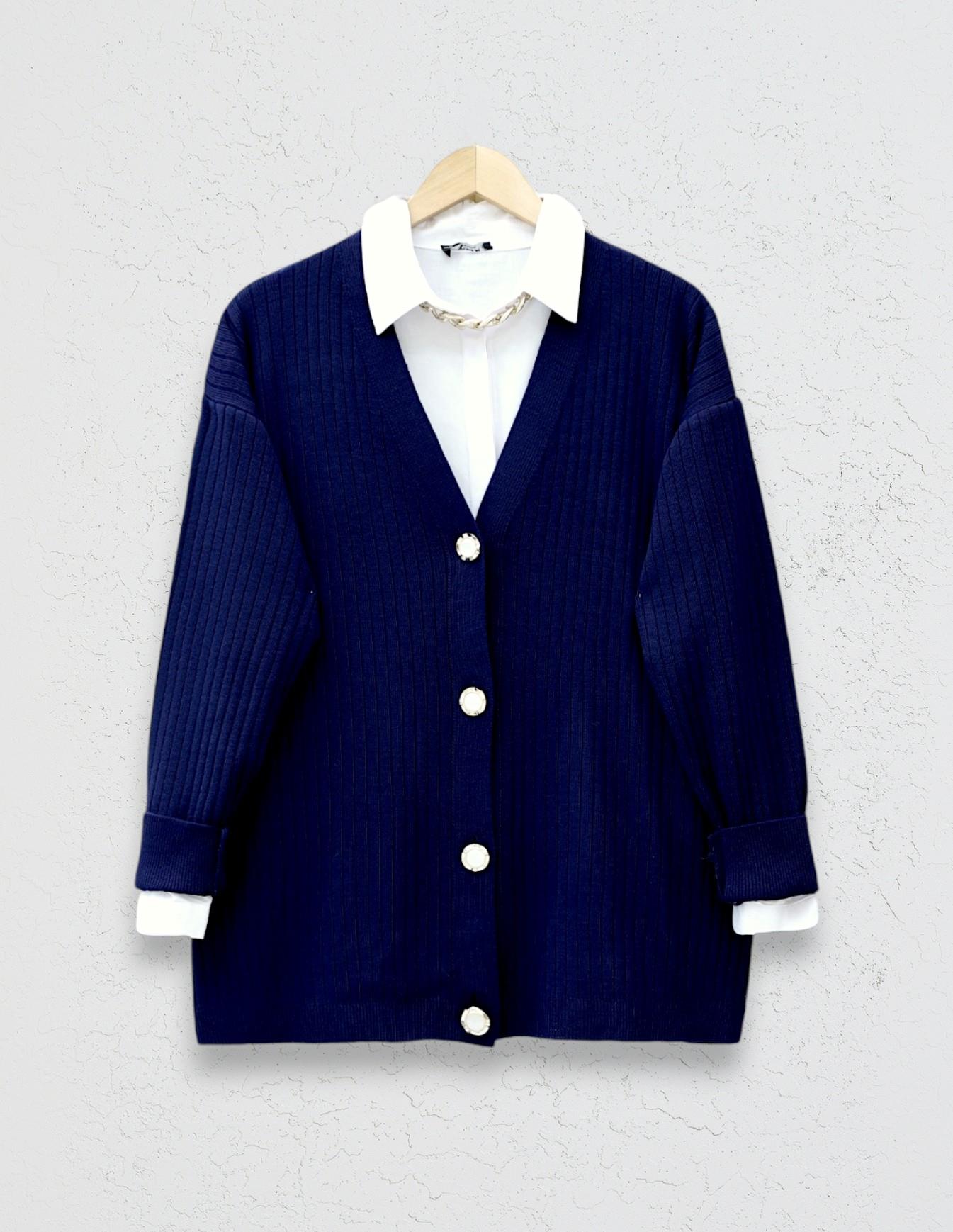 Düğmeli Fitilli Triko Hırka -Laci (357-6164-R03)
