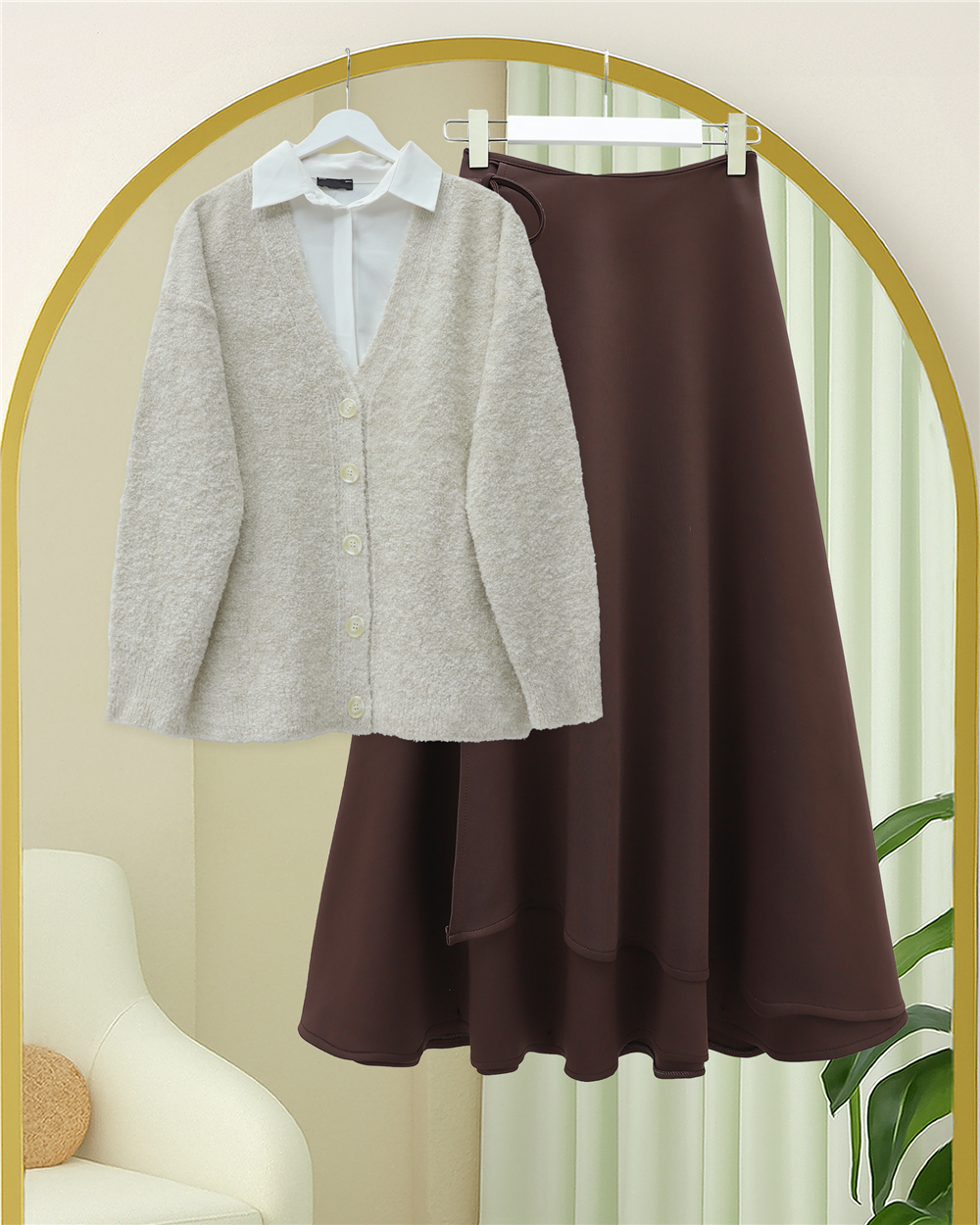 Not: Ürün içeriği hırkadan oluşmaktadır. (Gömlek, pantolon, ayakkabı, çanta ve takılar dekor amaçlı kullanılmaktadır.)