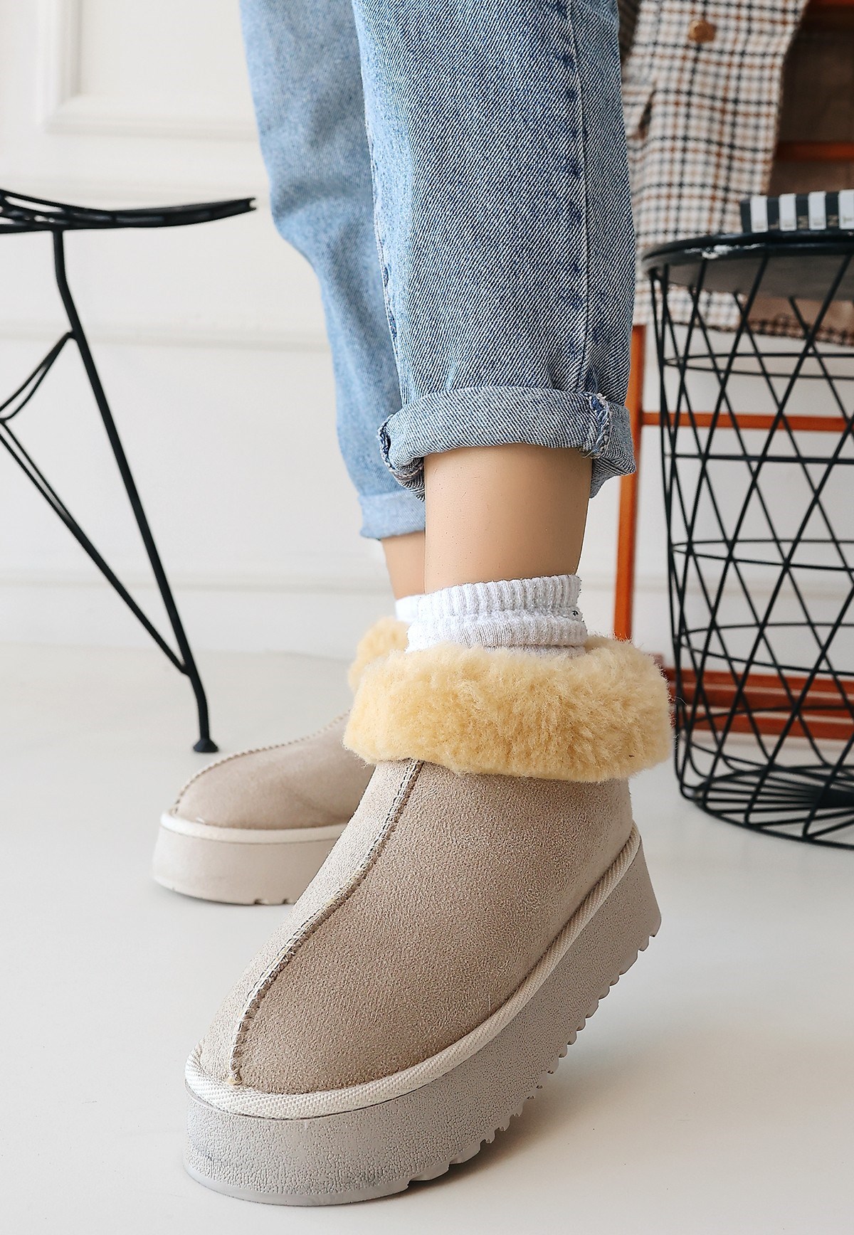 Edali Süet Bot -Bej modeli, kadın bot kategorisinde, bej rengiyle soğuk havalarda hem şıklık hem de fonksiyonellik arayanlar için uygun bir seçenektir.