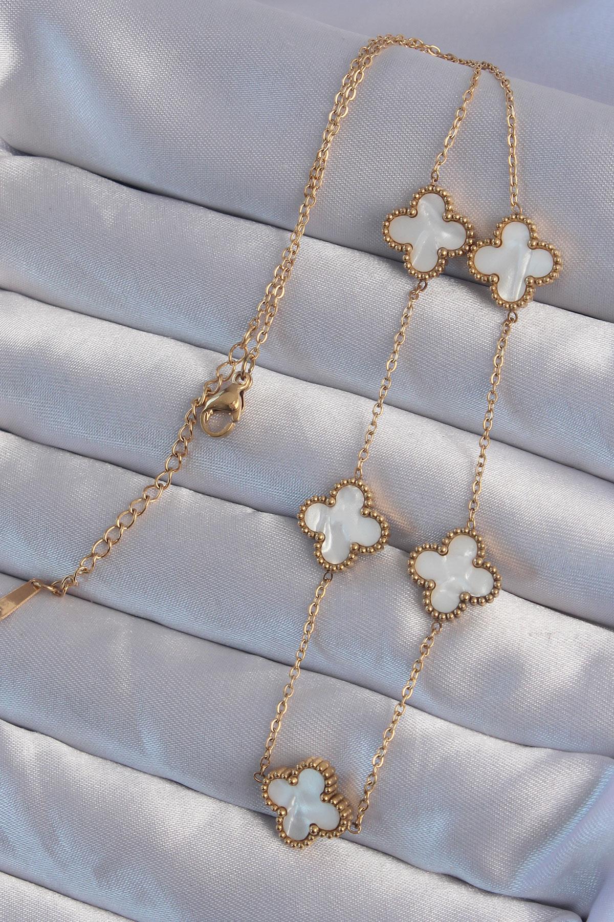316L Çelik Gold Renk Beyaz Sedefli Yonca Kolye (BKO8996)