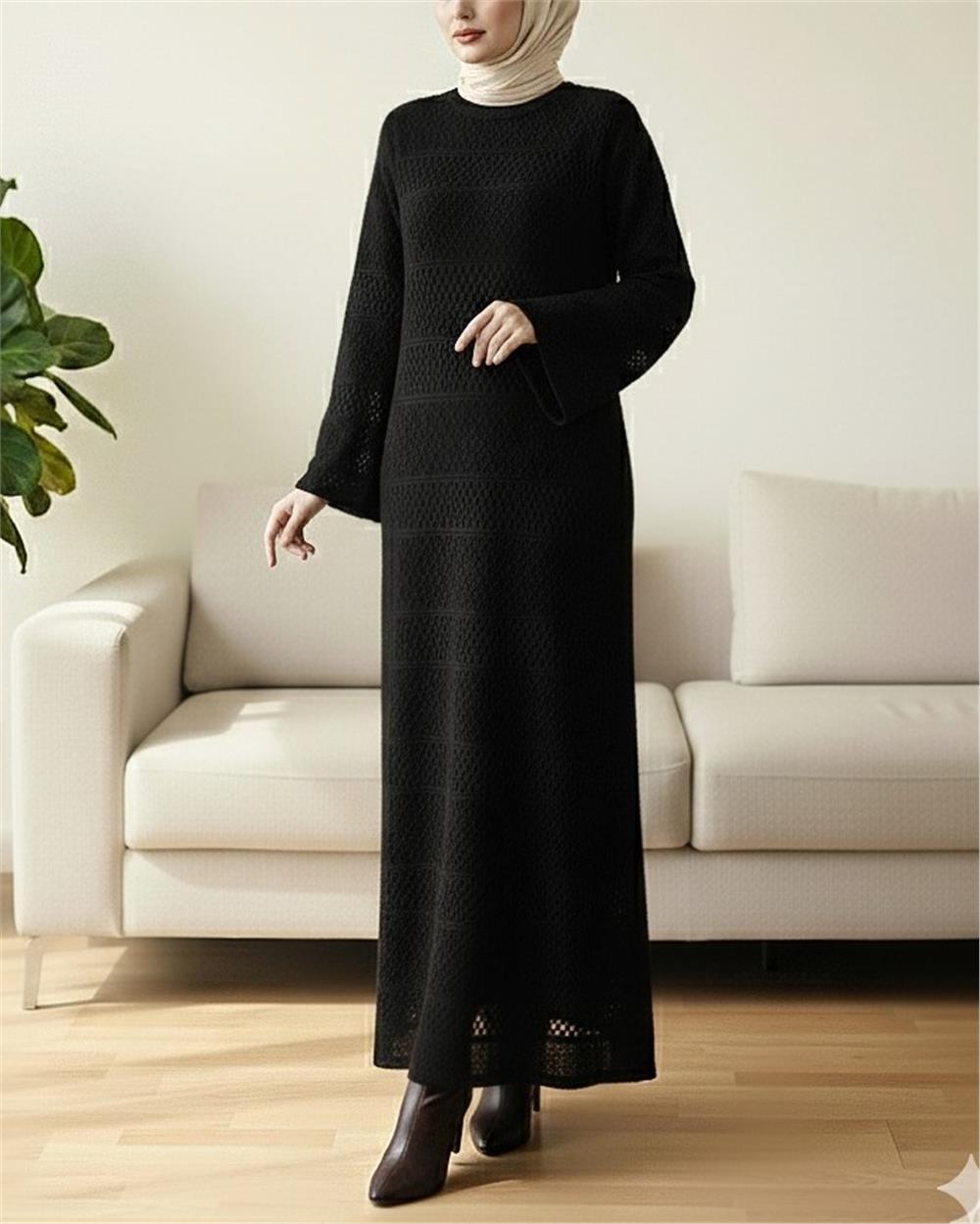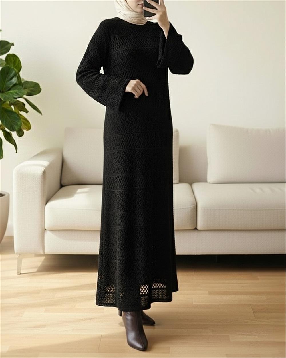 Ajurlu Karışık Desenli İçlikli Triko Elbise -Siyah (109-0926-R01)