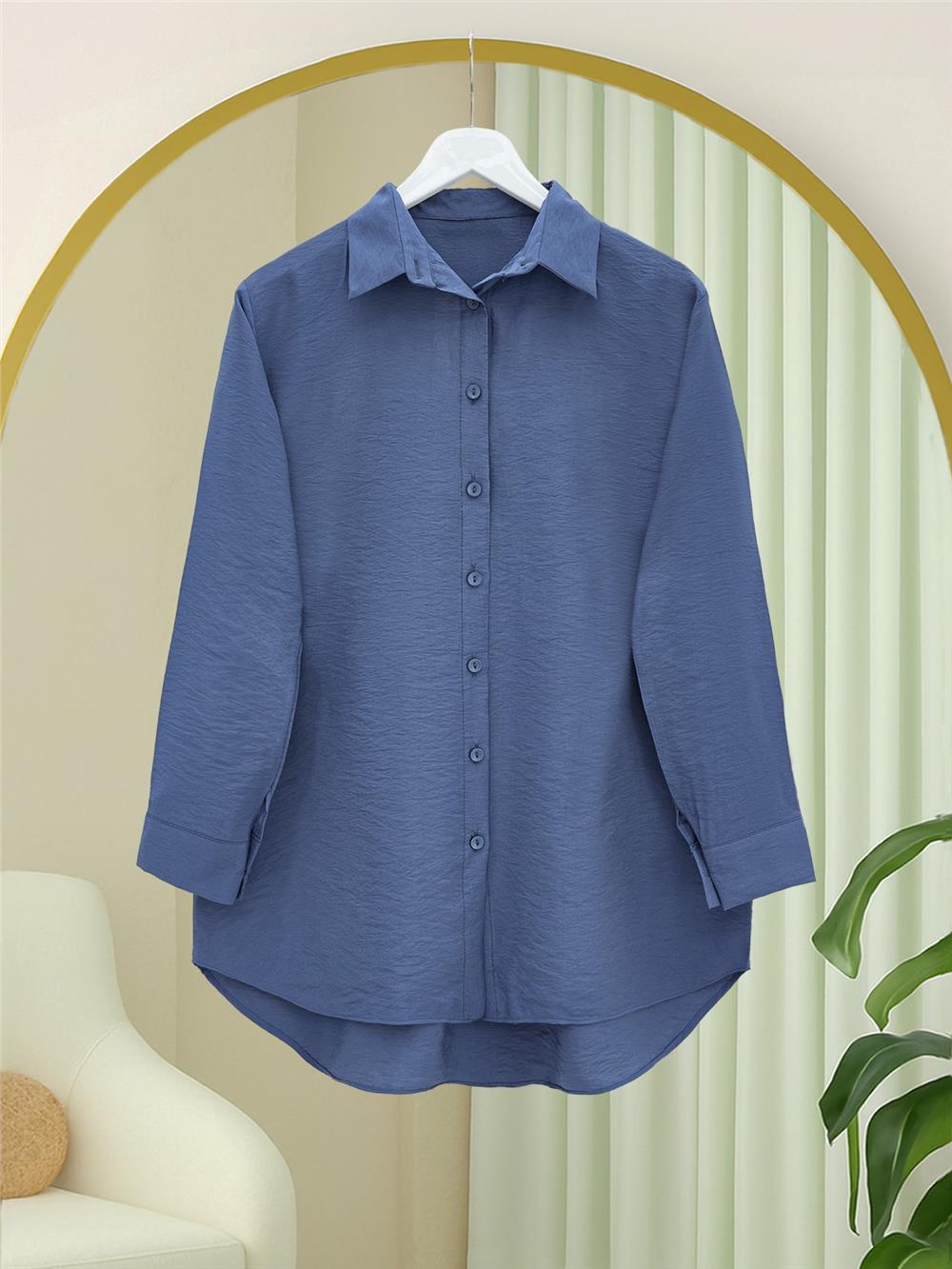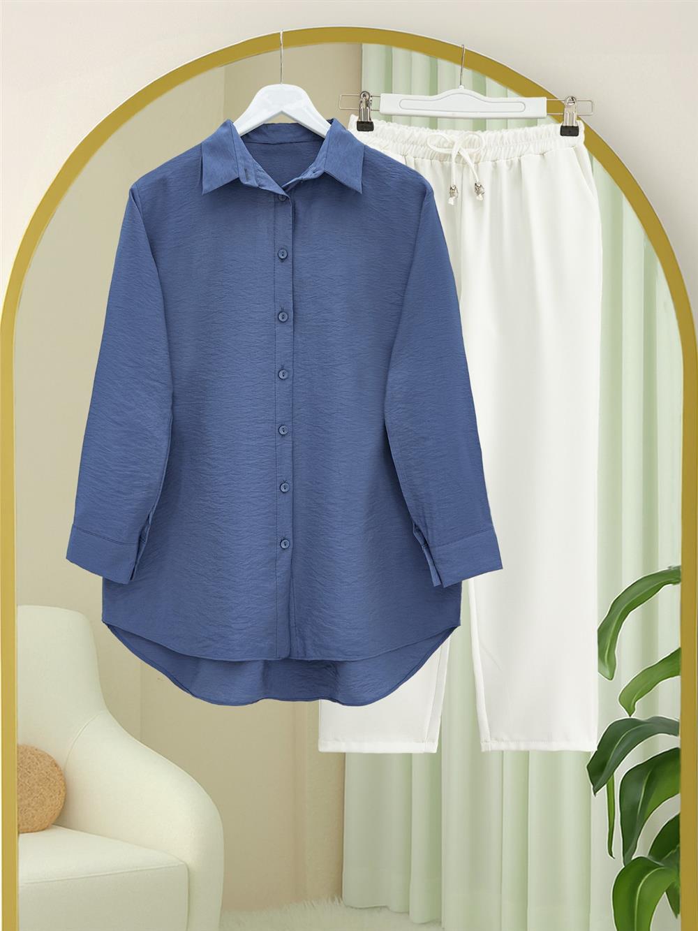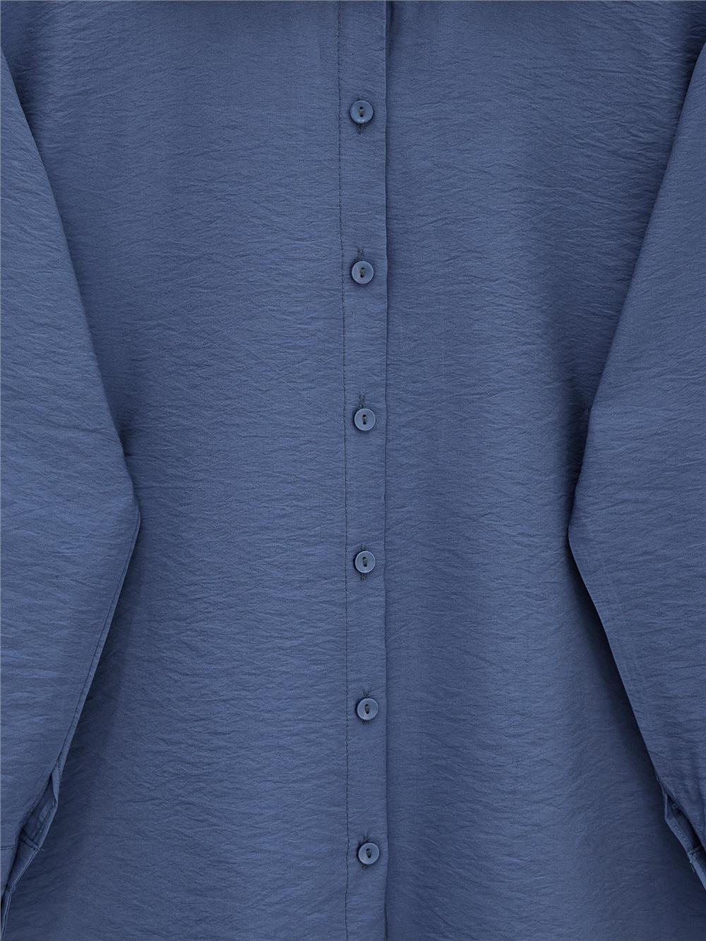 Arkası Uzun Düğmeli Poplin Gömlek -İndigo (349-60001-R21)
