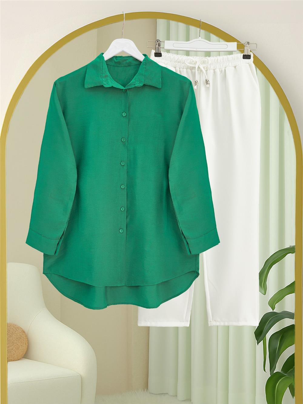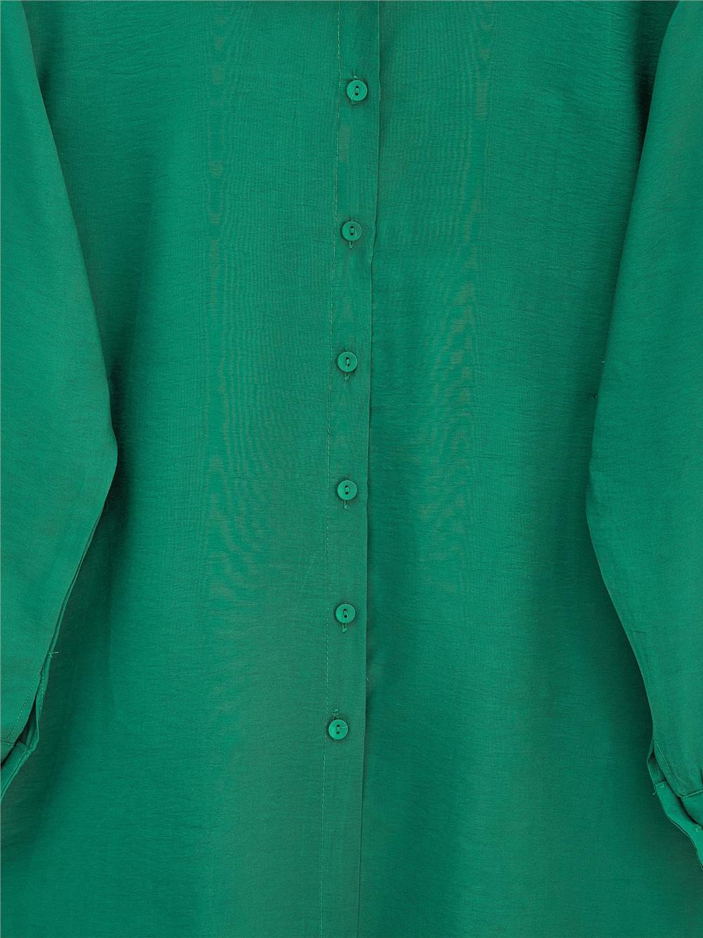 Arkası Uzun Düğmeli Poplin Gömlek -Yeşil (349-60001-R35)