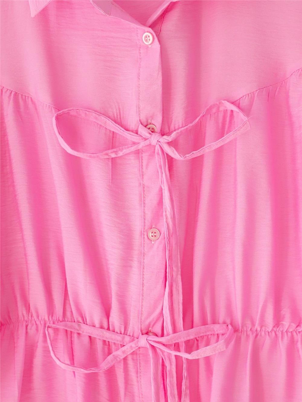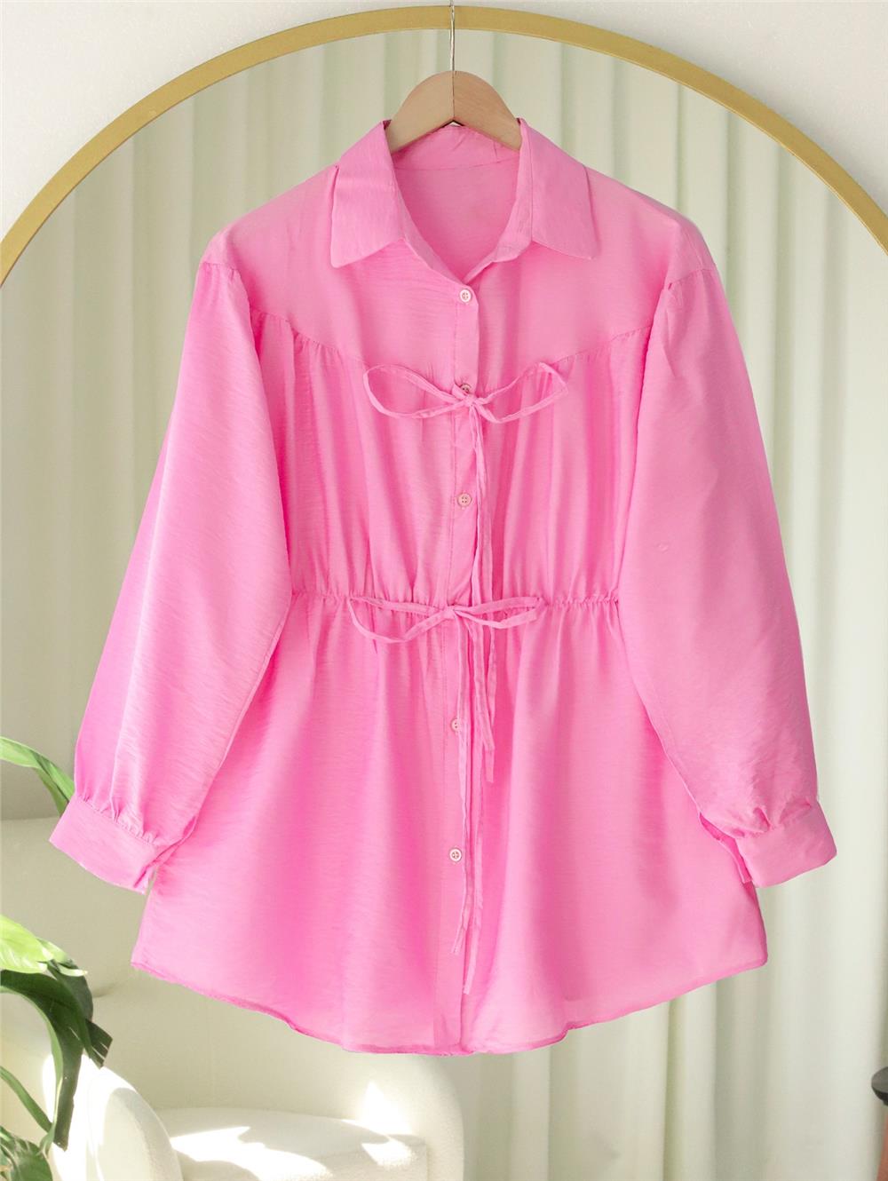 Bağlama Detaylı Beli Lastikli Düğmeli Gömlek -Pembe (120-1624-R20)