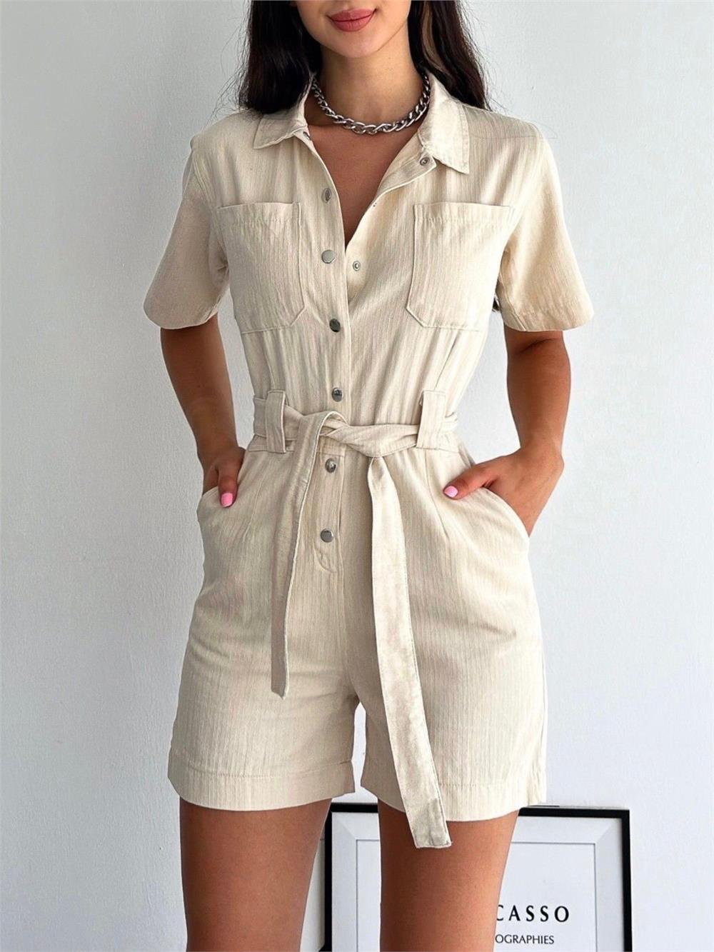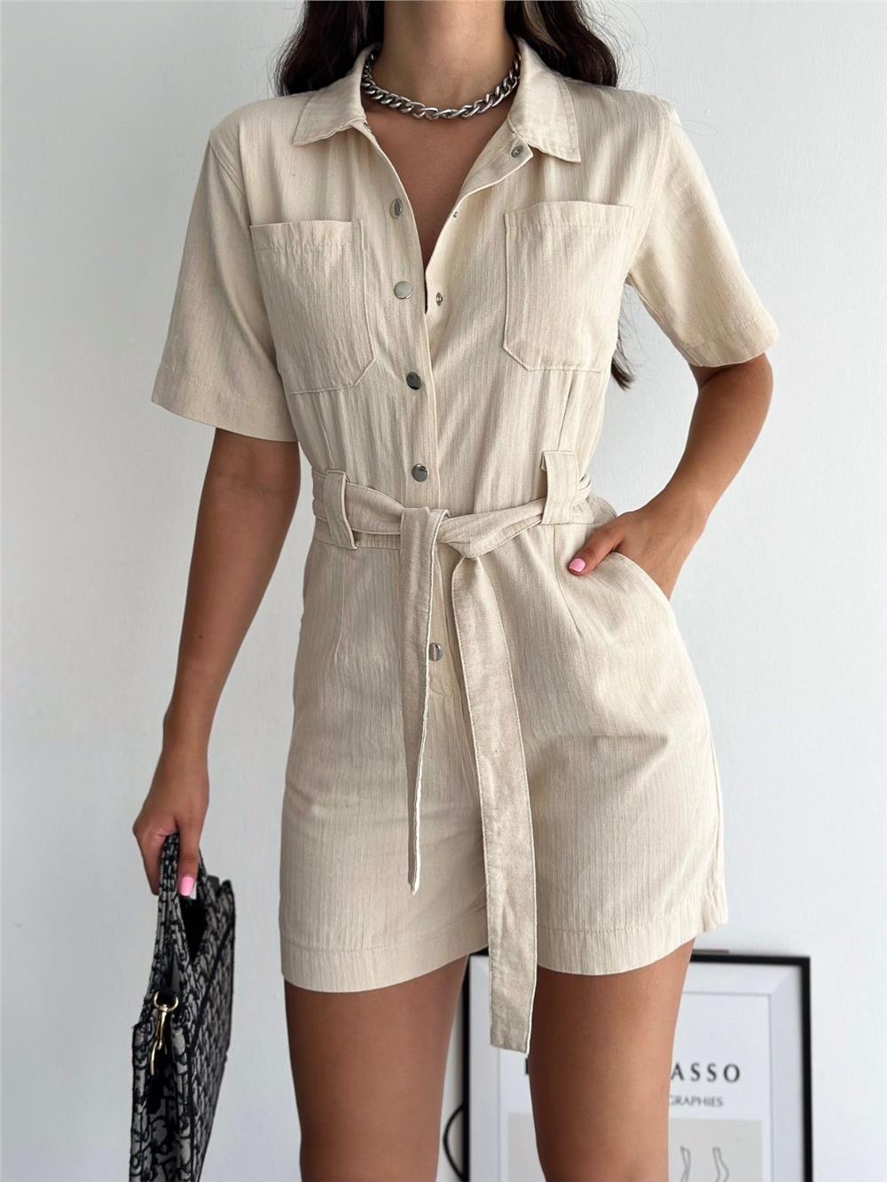 Linen Salopet with Herringbone Shorts -Beige (372-9508-R56)