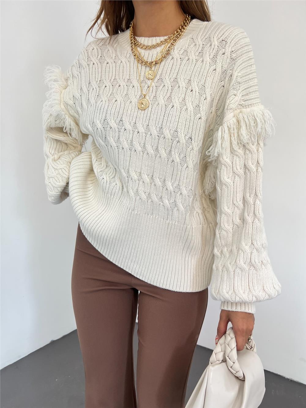 Balloon Sleeve Tassel Knitwear Sweater - Stone (351-5244-R43)