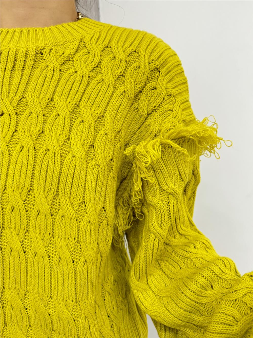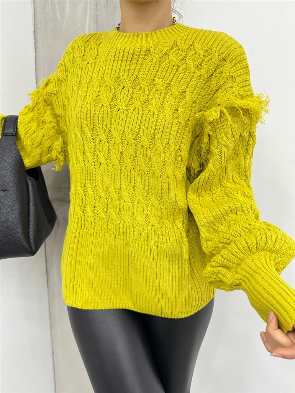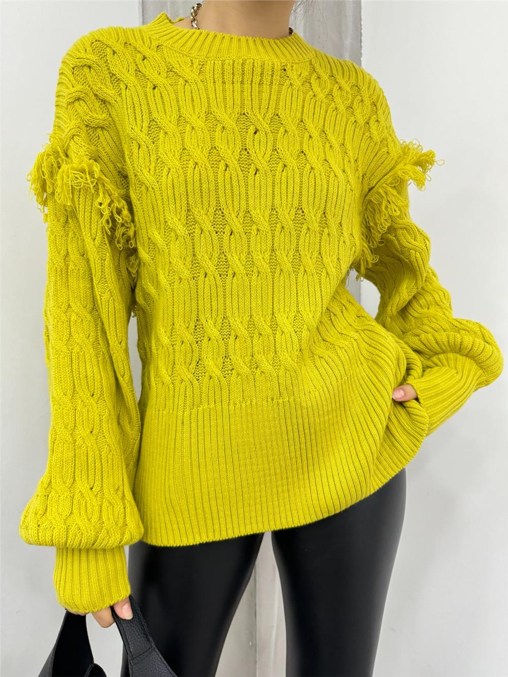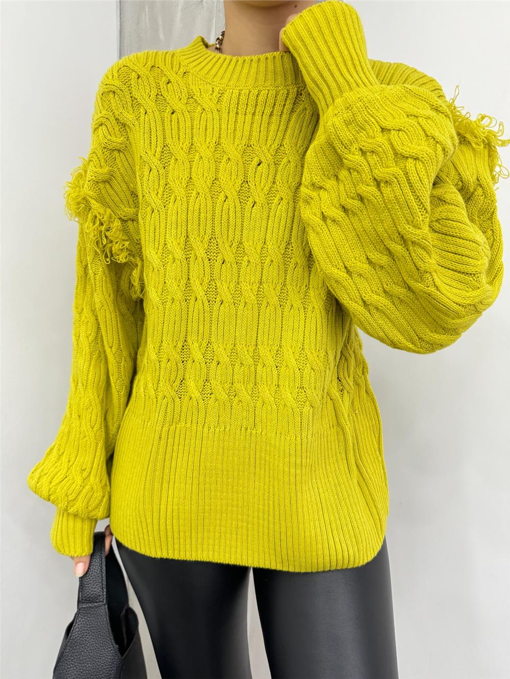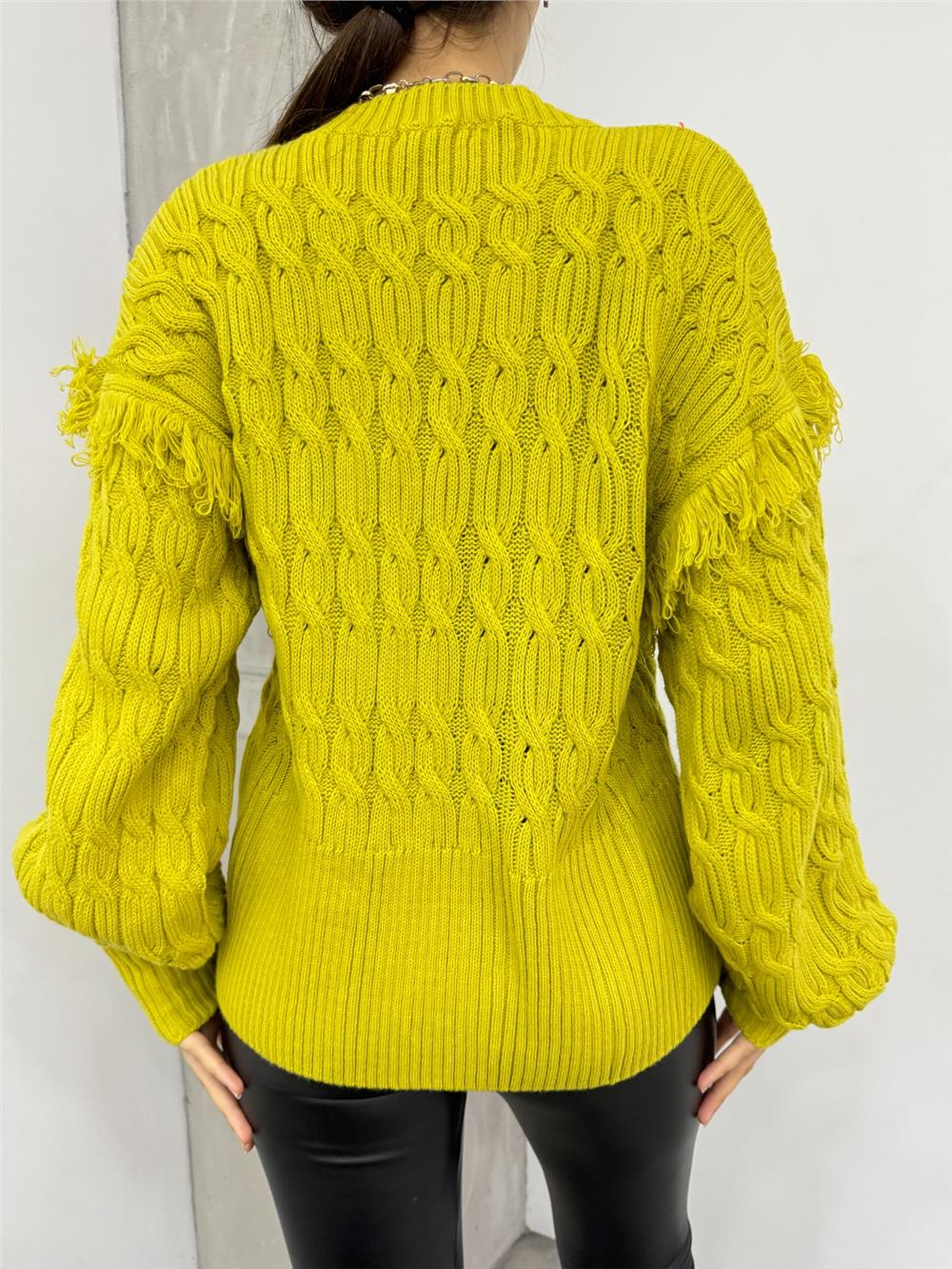 Balloon Sleeve Tassel Knitwear Sweater - Oil Green (351-5244-R72)